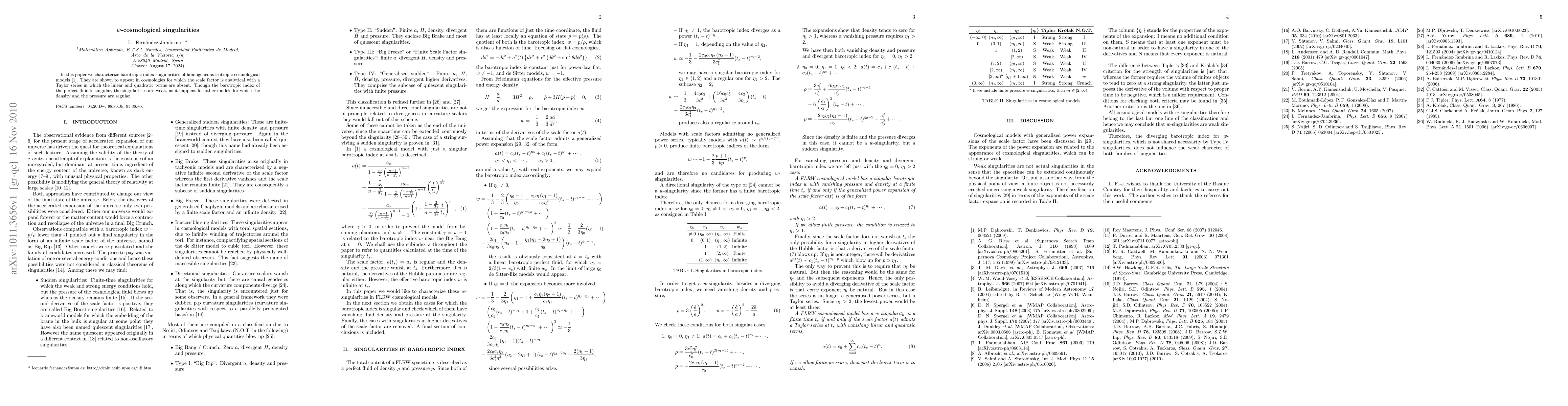 This paper characterizes barotropic index singularities in homogeneous isotropic cosmological models, finding they appear with weak singularities that affect the density and pressure of perfect fluids.