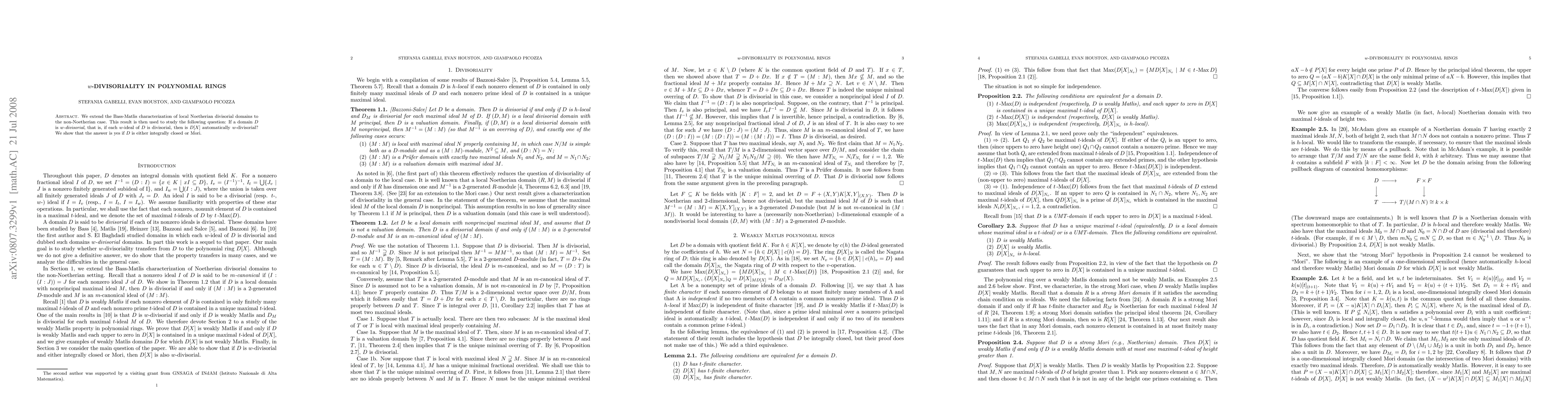 This paper extends the Bass-Matlis characterization of divisorial domains to non-Noetherian settings and demonstrates that if a domain D is w-divisorial, then D[X] is also w-divisorial when D is either integrally closed or Mori.