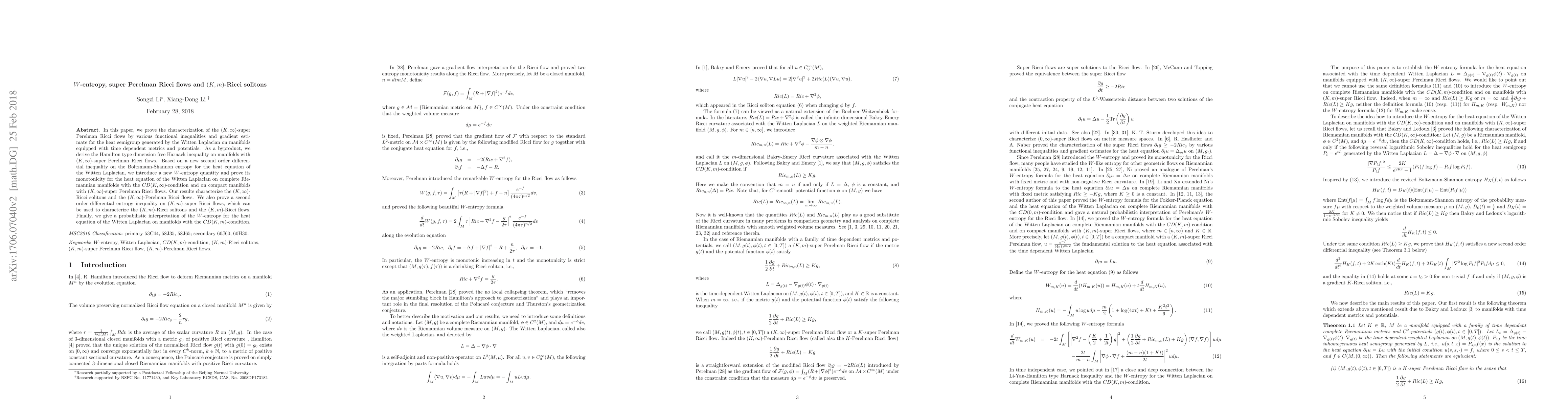 This paper characterizes $(K, \infty)$-super Perelman Ricci flows and $(K, m)$-Ricci solitons using functional inequalities and gradient estimates for the heat semigroup generated by the Witten Laplacian. It introduces a new $W$-entropy quantity, proving its monotonicity and providing a probabilistic interpretation, and derives a dimension-free Harnack inequality.