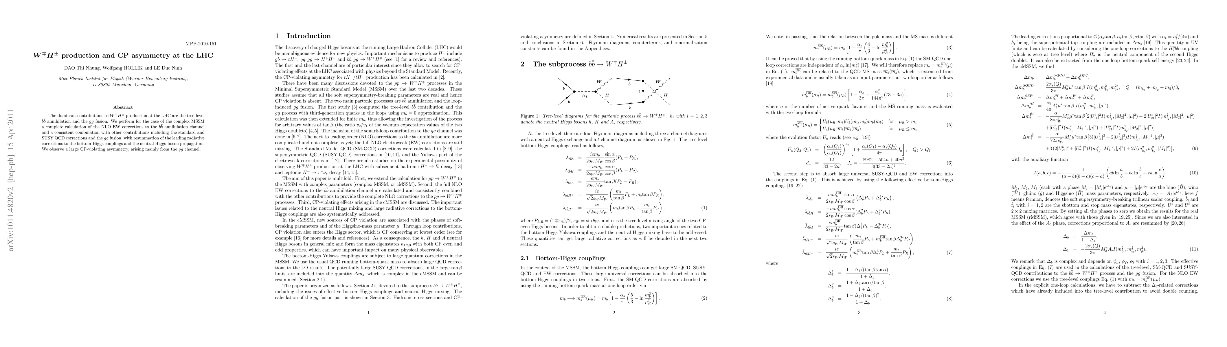 The dominant contributions to W-+ H+- production at the LHC are the tree-level b anti-b annihilation and the gg fusion. We perform for the case of the complex MSSM a complete calculation of the NLO EW corrections to the b anti-b annihilation channel and a consistent combination with other contributions including the standard and SUSY QCD corrections and the gg fusion, with resummation of the leading radiative corrections to the bottom-Higgs couplings and the neutral Higgs-boson propagators. We observe a large CP-violating asymmetry, arising mainly from the gg channel.
