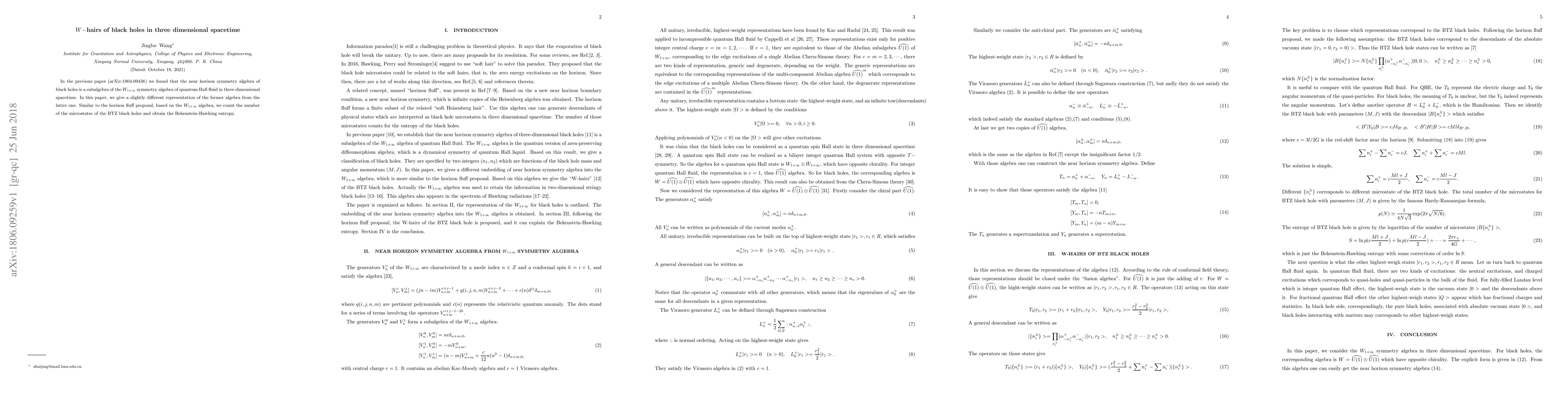 In the previous paper (arXiv:1804.09438) we found that the near horizon symmetry algebra of black holes is a subalgebra of the $W_{1+\infty}$ symmetry algebra of quantum Hall fluid in three dimensional spacetime. In this paper, we give a slightly different representation of the former algebra from the latter one. Similar to the horizon fluff proposal, based on the $W_{1+\infty}$ algebra, we count the number of the microstates of the BTZ black holes and obtain the Bekenstein-Hawking entropy.