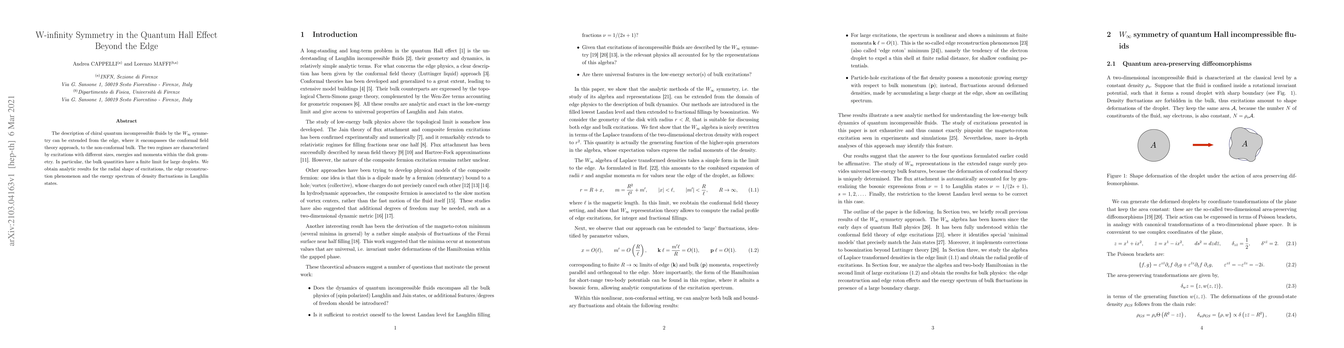 The description of chiral quantum incompressible fluids by the W-infinity symmetry can be extended from the edge, where it encompasses the conformal field theory approach, to the non-conformal bulk. The two regimes are characterized by excitations with different sizes, energies and momenta within the disk geometry. In particular, the bulk quantities have a finite limit for large droplets. We obtain analytic results for the radial shape of excitations, the edge reconstruction phenomenon and the energy spectrum of density fluctuations in Laughlin states.