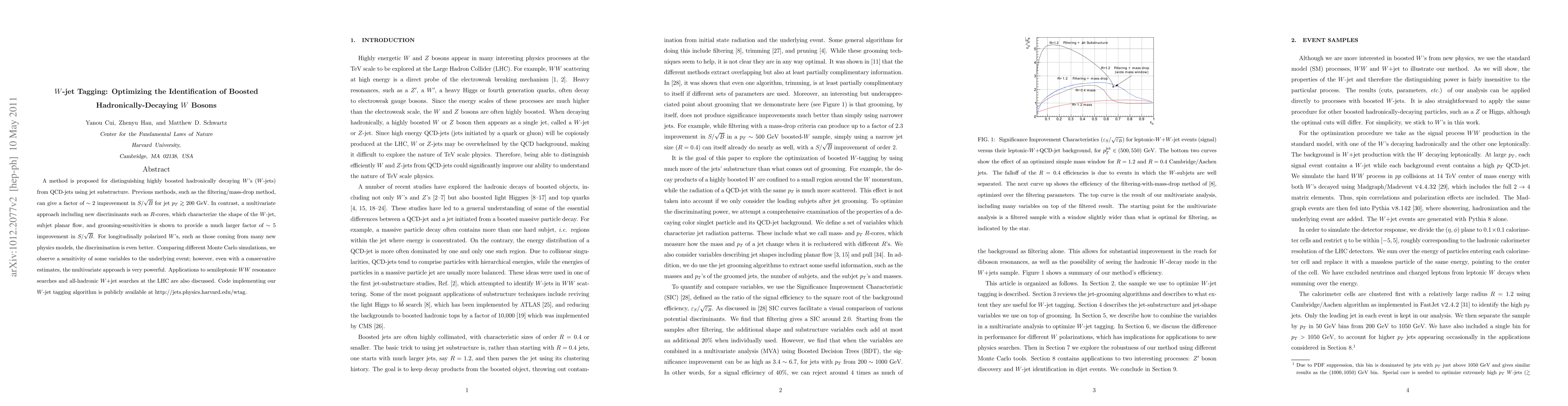 This paper proposes a multivariate method for tagging highly boosted W-jets using jet substructure, achieving a ~5-fold improvement over previous techniques in distinguishing W-jets from QCD-jets, especially for longitudinally polarized W's. The method includes new discriminants like R-cores and subjet planar flow, and is applicable to LHC searches for semileptonic WW resonances and all-hadronic W+jet events.