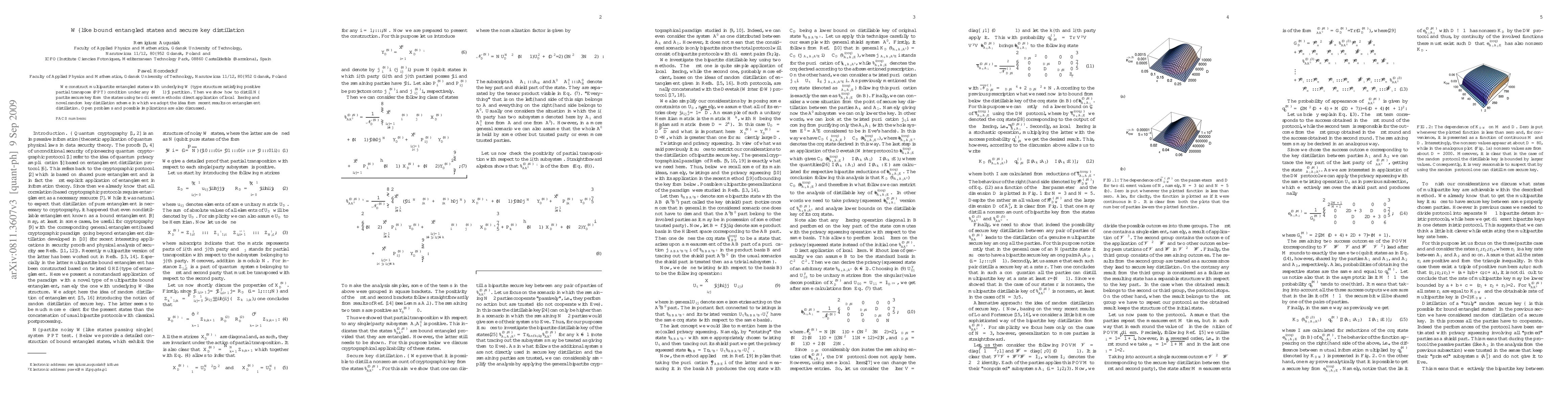 This paper constructs multipartite W-like entangled states that are bound entangled yet satisfy the PPT condition. It demonstrates secure key distillation from these states using local filtering and a novel random key distillation scheme, highlighting potential implications and open problems.