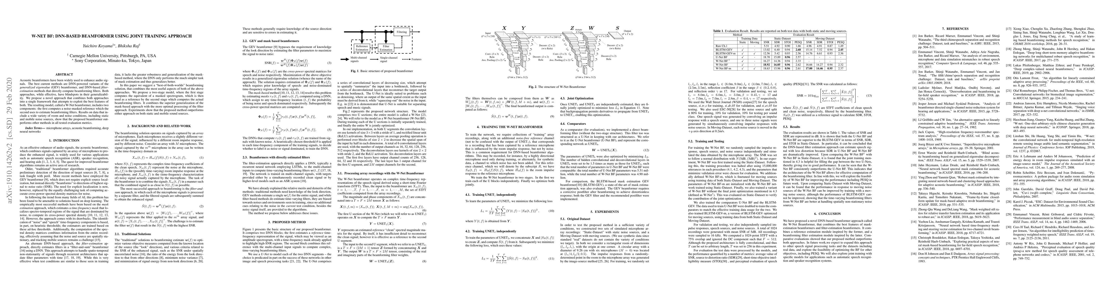 The research introduces W-Net BF, a novel DNN-based beamformer that merges two existing approaches to enhance audio signals. This W-Net beamformer, consisting of two components for noise-masked reference computation and filter estimation, outperforms current methods in various room and noise conditions, demonstrating superior performance across all tested metrics.