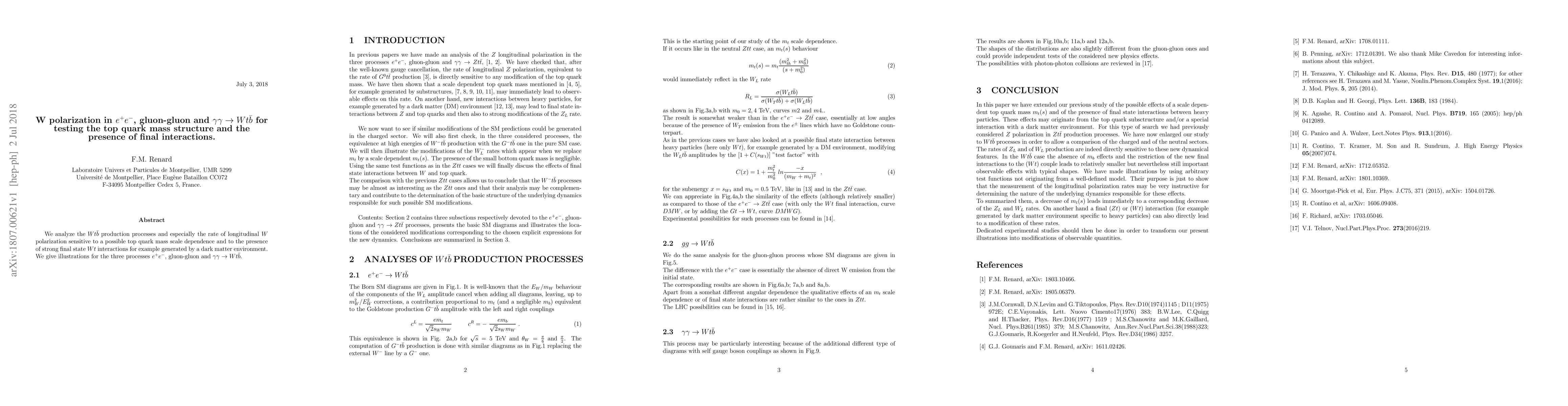 We analyze the $Wt\bar b$ production processes and especially the rate of longitudinal $W$ polarization sensitive to a possible top quark mass scale dependence and to the presence of strong final state $Wt$ interactions for example generated by a dark matter environment. We give illustrations for the three processes $e^+e^-$, gluon-gluon and $\gamma\gamma \to W t\bar b $.