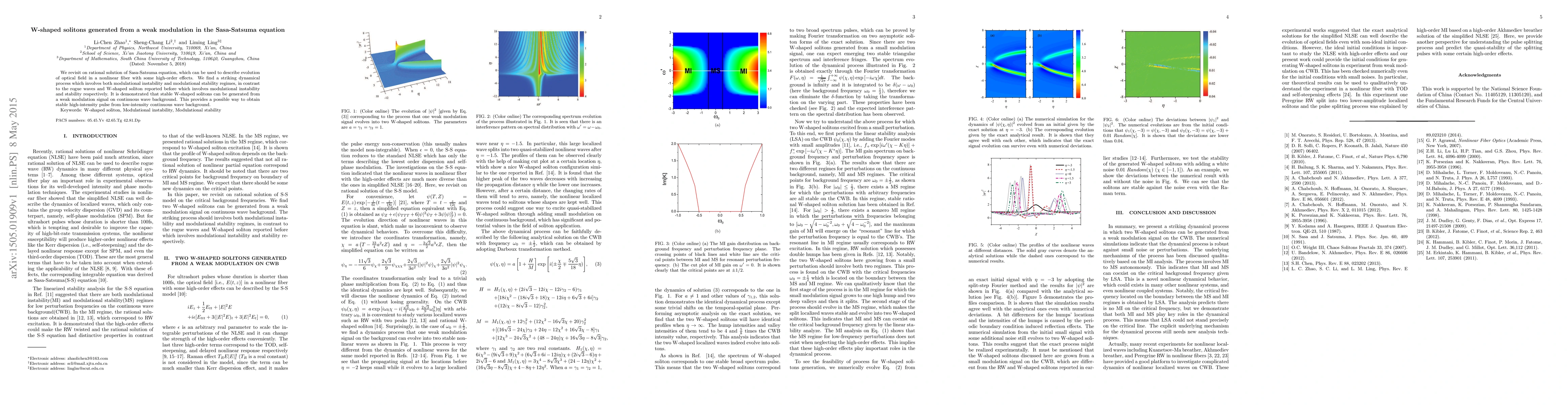 This paper explores rational solutions of the Sasa-Satsuma equation to describe optical field evolution in nonlinear fibers, revealing a process generating stable W-shaped solitons from weak modulations, contrasting previous modulational instability-based rogue waves. This discovery offers a method to produce high-intensity pulses from low-intensity continuous wave backgrounds.