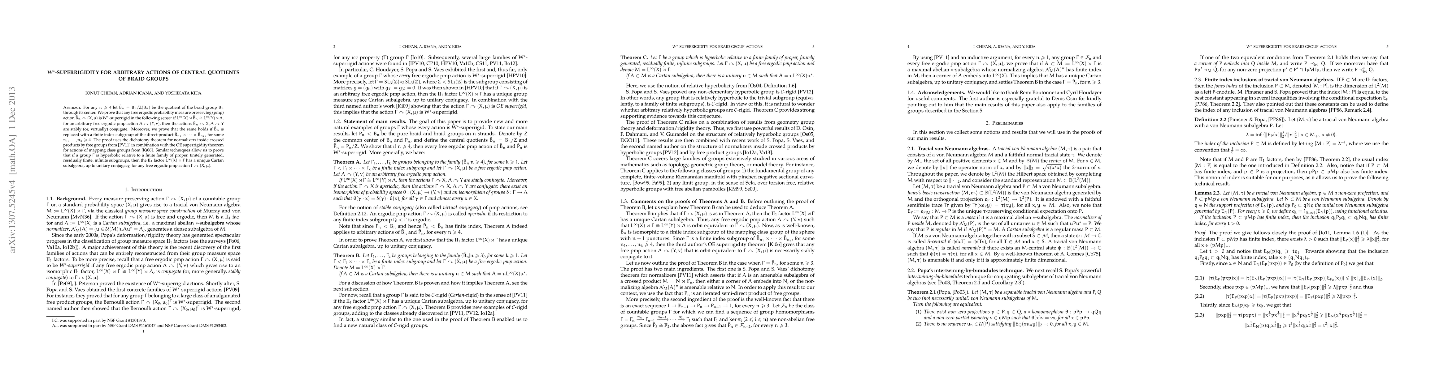 This paper proves W*-superrigidity for free ergodic probability measure preserving actions of central quotients of braid groups, showing that if these actions are isomorphic to those of another group, then the original and new actions are stably conjugate. The proof employs results from the study of normalizers in crossed products and superrigidity for mapping class groups.