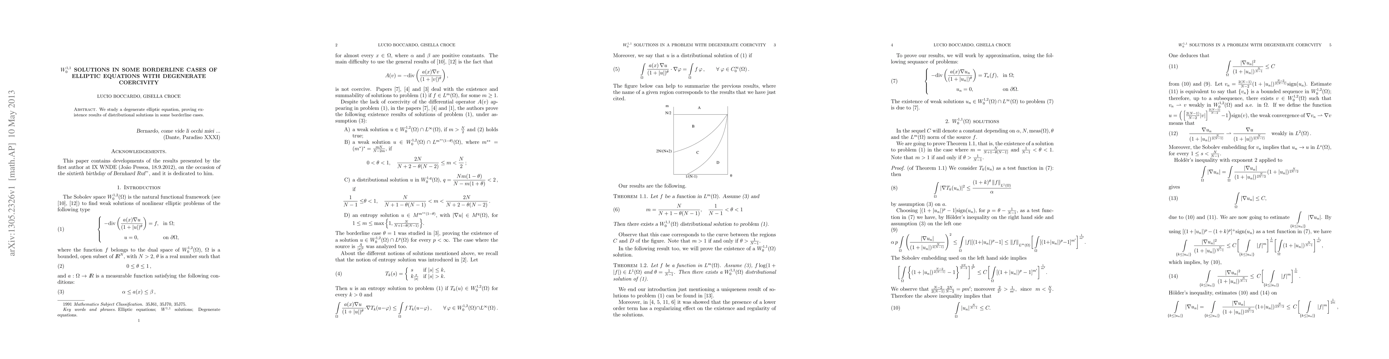 Summary: This paper investigates a degenerate elliptic equation and establishes the existence of distributional solutions in specific borderline cases where traditional coercive conditions fail.