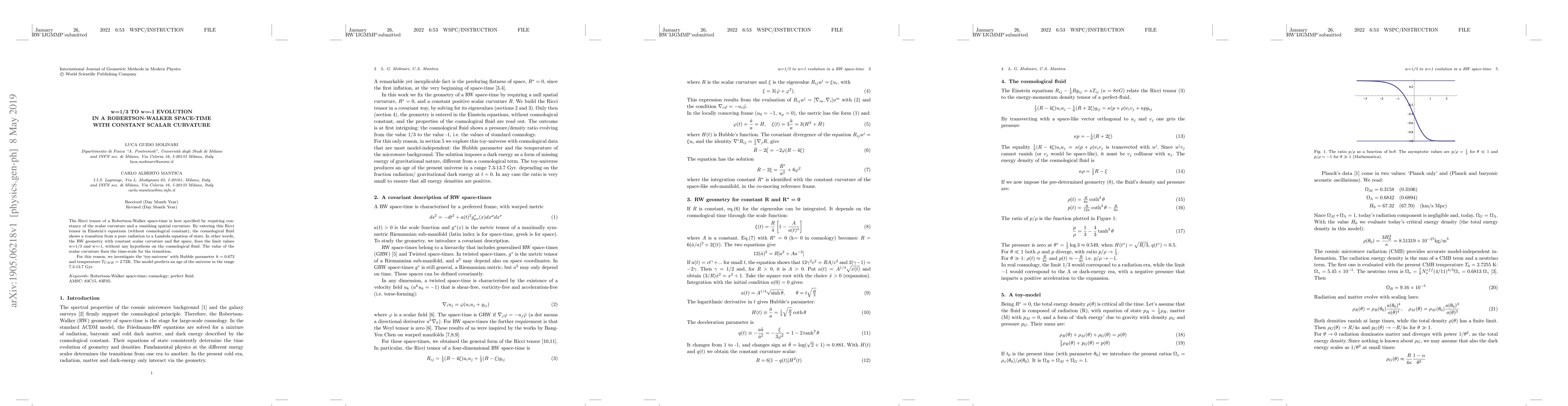 This paper explores a Robertson-Walker space-time with constant scalar curvature and flat spatial sections, showing that the cosmological fluid transitions from a radiation-dominated state (w=1/3) to a Lambda-dominated state (w=-1). The model predicts an age for the universe between 7.3 and 13.7 Gyr.