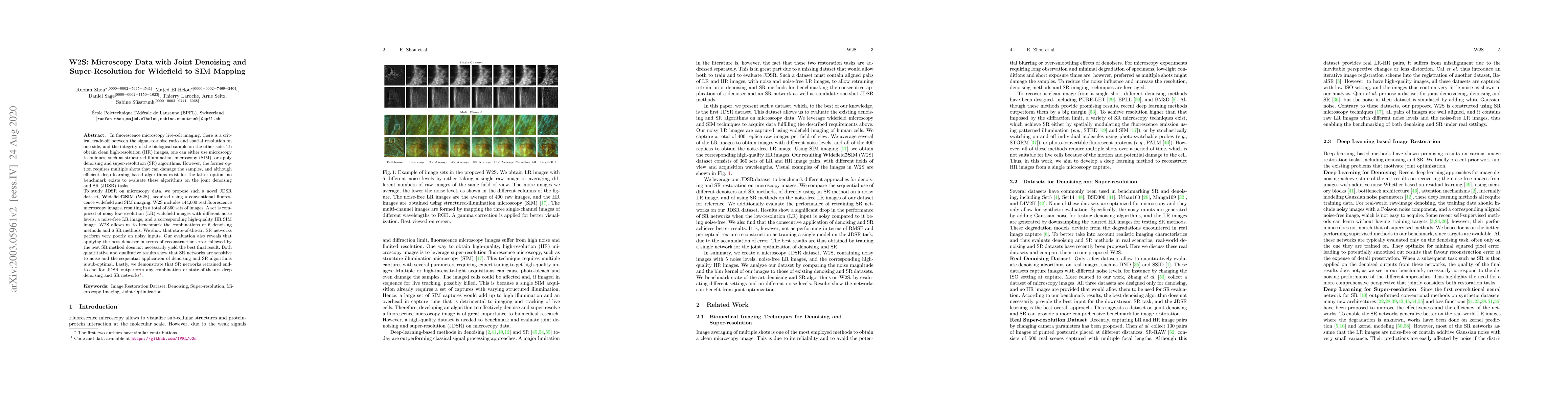Researchers created a new dataset (W2S) to evaluate joint denoising and super-resolution algorithms for fluorescence microscopy. They found that state-of-the-art SR networks struggle with noisy inputs and sequential application of denoising and SR algorithms is sub-optimal.