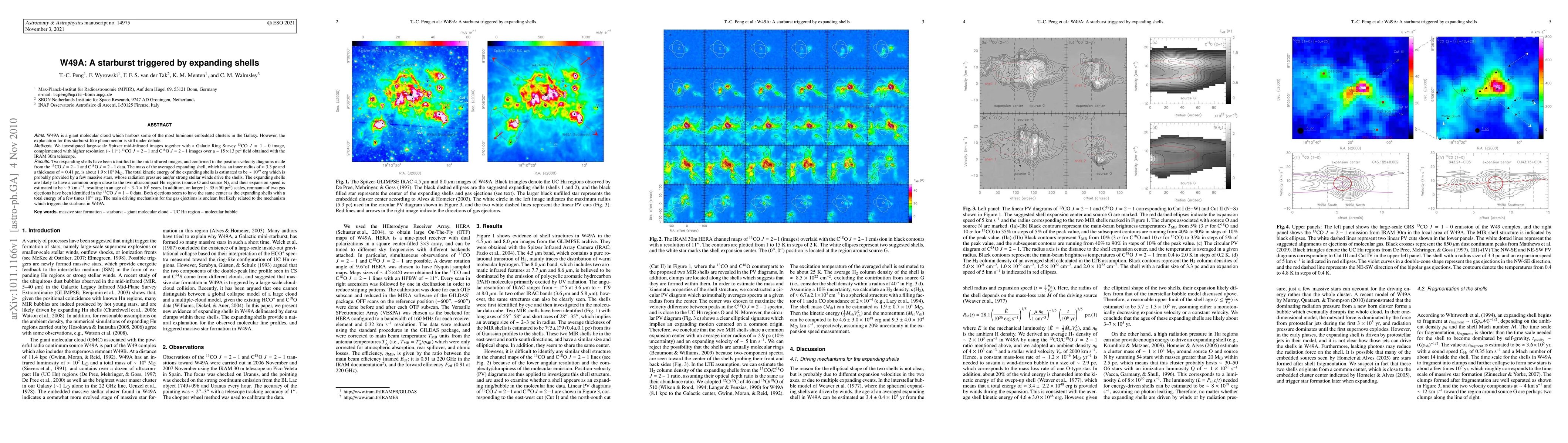 W49A, a giant molecular cloud with luminous embedded clusters, exhibits a starburst-like phenomenon likely driven by expanding shells originating from massive stars near two ultracompact H II regions. These shells, with a combined kinetic energy of ~10^49 erg, suggest a common origin and may trigger the starburst.