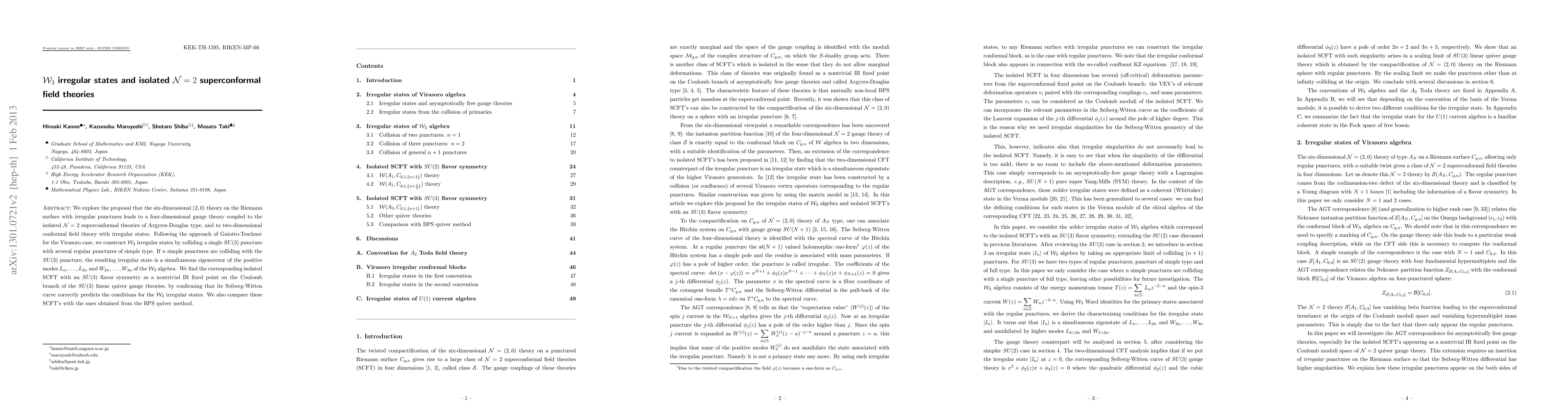 The paper investigates the (2,0) theory on Riemann surfaces with irregular punctures, linking it to four-dimensional N=2 superconformal field theories and two-dimensional CFTs with irregular states. By colliding an SU(3) puncture with multiple simple punctures, the authors construct W_3 irregular states, finding an isolated SCFT with SU(3) flavor symmetry as a Coulomb branch fixed point. They validate this SCFT via Seiberg-Witten curve conditions and compare it with SCFTs from the BPS quiver method.