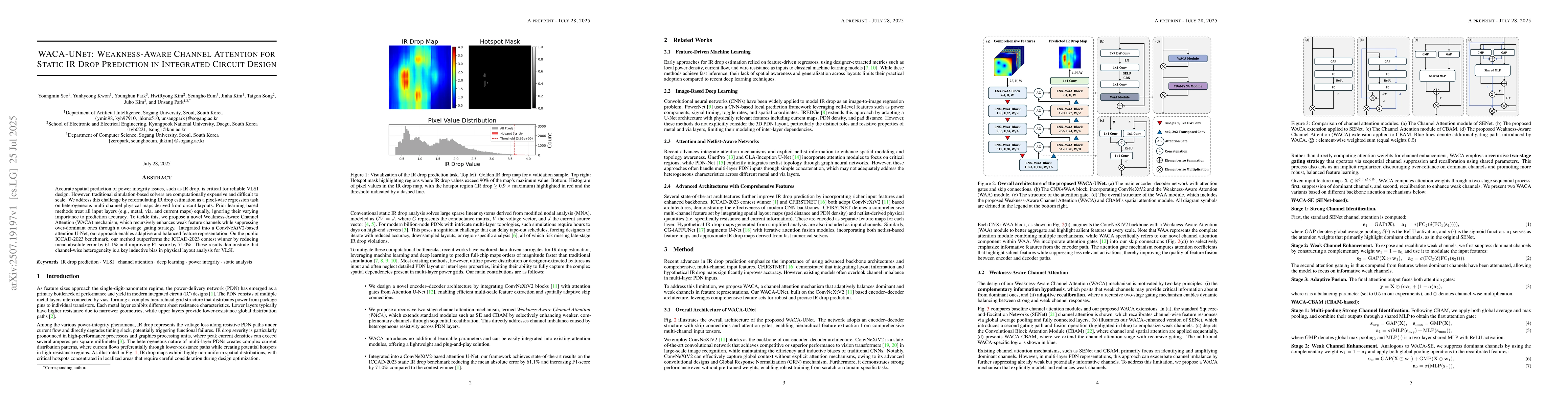Accurate spatial prediction of power integrity issues, such as IR drop, is critical for reliable VLSI design. However, traditional simulation-based solvers are computationally expensive and difficult to scale. We address this challenge by reformulating IR drop estimation as a pixel-wise regression task on heterogeneous multi-channel physical maps derived from circuit layouts. Prior learning-based methods treat all input layers (e.g., metal, via, and current maps) equally, ignoring their varying importance to prediction accuracy. To tackle this, we propose a novel Weakness-Aware Channel Attention (WACA) mechanism, which recursively enhances weak feature channels while suppressing over-dominant ones through a two-stage gating strategy. Integrated into a ConvNeXtV2-based attention U-Net, our approach enables adaptive and balanced feature representation. On the public ICCAD-2023 benchmark, our method outperforms the ICCAD-2023 contest winner by reducing mean absolute error by 61.1% and improving F1-score by 71.0%. These results demonstrate that channel-wise heterogeneity is a key inductive bias in physical layout analysis for VLSI.