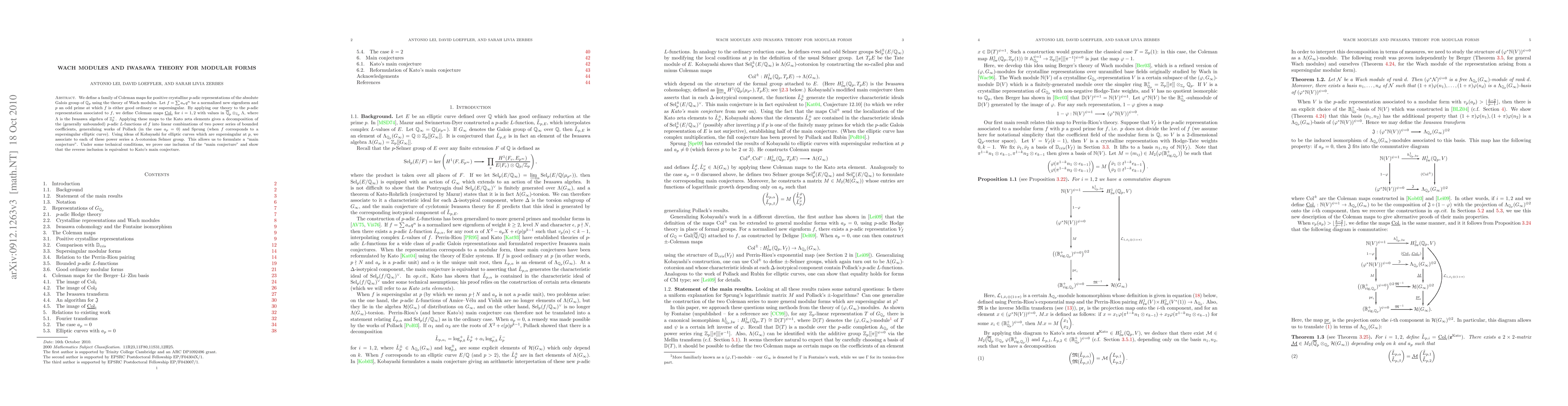 This paper defines Coleman maps for crystalline p-adic representations using Wach modules and applies them to modular forms, leading to a decomposition of p-adic L-functions. The authors formulate and prove a "main conjecture" relating these decompositions to cotorsion Selmer groups.