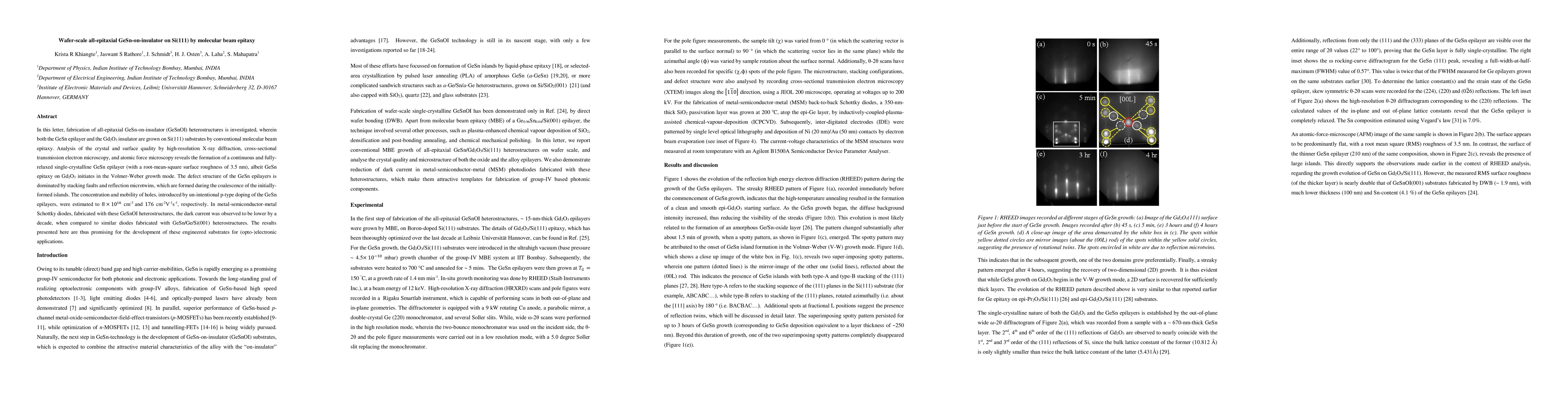 Researchers successfully created wafer-scale GeSn-on-insulator heterostructures on Si(111) using molecular beam epitaxy, with improved electronic properties compared to similar structures.