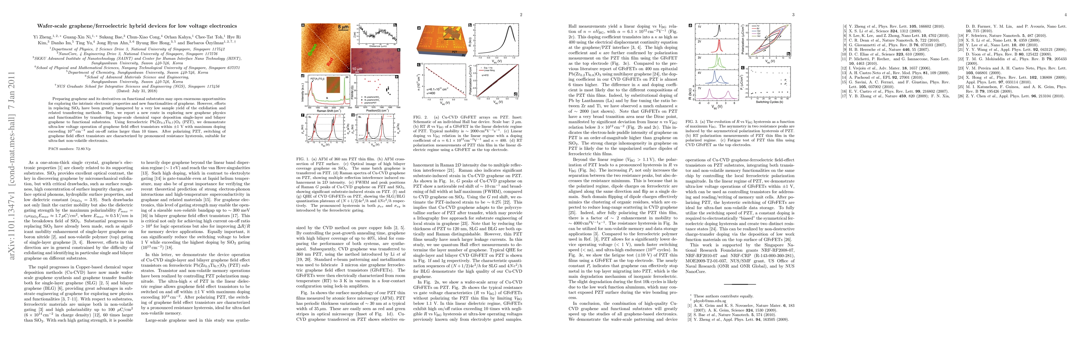 This paper reports a new method for transferring large-scale graphene to functional ferroelectric substrates, demonstrating ultra-low voltage operation in graphene field effect transistors. The use of Pb(Zr$_{0.3}$Ti$_{0.7}$)O$_{3}$ (PZT) enables high on-off ratios and resistance hysteresis, paving the way for non-volatile electronics.