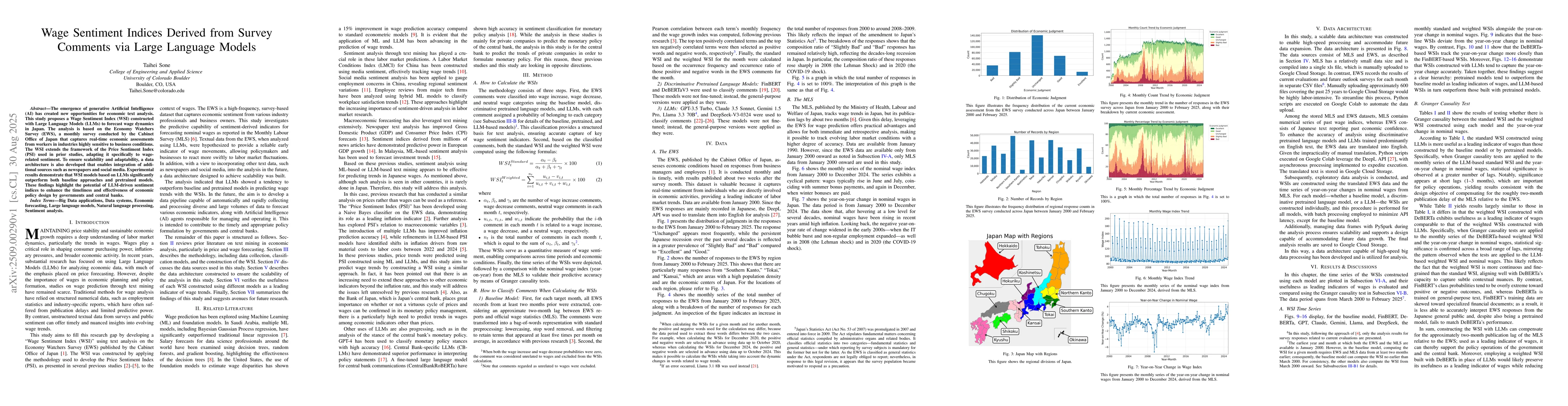 The emergence of generative Artificial Intelligence (AI) has created new opportunities for economic text analysis. This study proposes a Wage Sentiment Index (WSI) constructed with Large Language Models (LLMs) to forecast wage dynamics in Japan. The analysis is based on the Economy Watchers Survey (EWS), a monthly survey conducted by the Cabinet Office of Japan that captures real-time economic assessments from workers in industries highly sensitive to business conditions. The WSI extends the framework of the Price Sentiment Index (PSI) used in prior studies, adapting it specifically to wage related sentiment. To ensure scalability and adaptability, a data architecture is also developed that enables integration of additional sources such as newspapers and social media. Experimental results demonstrate that WSI models based on LLMs significantly outperform both baseline approaches and pretrained models. These findings highlight the potential of LLM-driven sentiment indices to enhance the timeliness and effectiveness of economic policy design by governments and central banks.