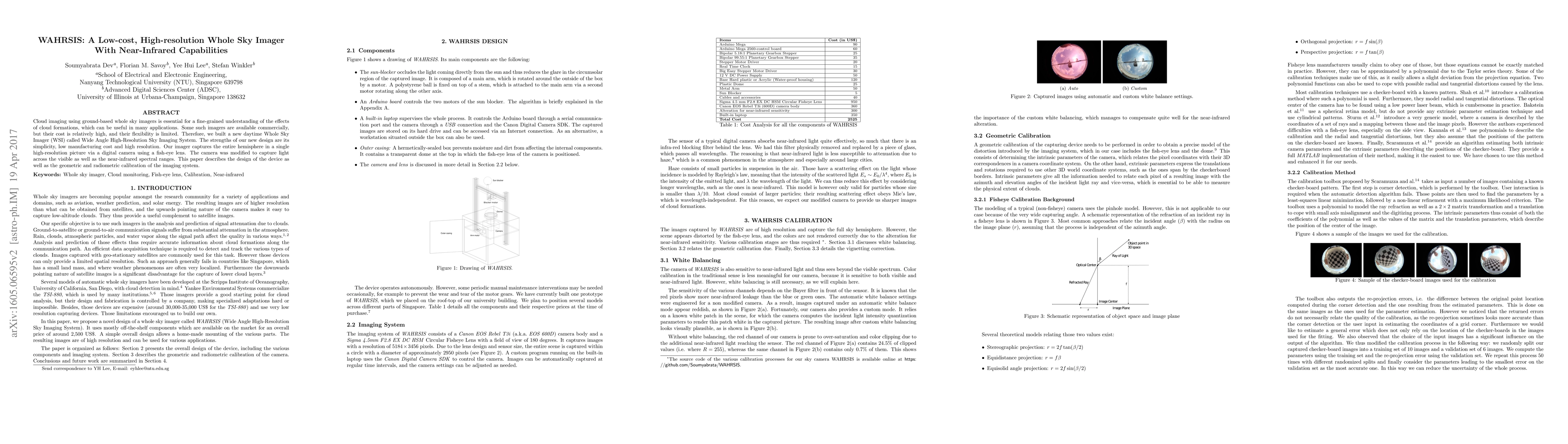 The WAHRSIS is a low-cost, high-resolution whole sky imager designed for capturing cloud formations in both visible and near-infrared light. It utilizes a fish-eye lens and a modified digital camera to achieve its capabilities, offering a cost-effective alternative to existing commercial systems.