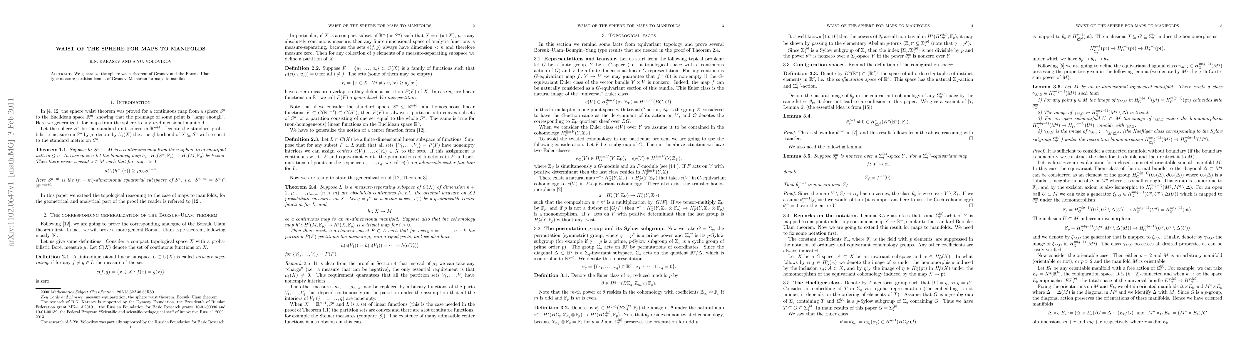 We generalize the sphere waist theorem of Gromov and the Borsuk--Ulam type measure partition lemma of Gromov--Memarian for maps to manifolds.