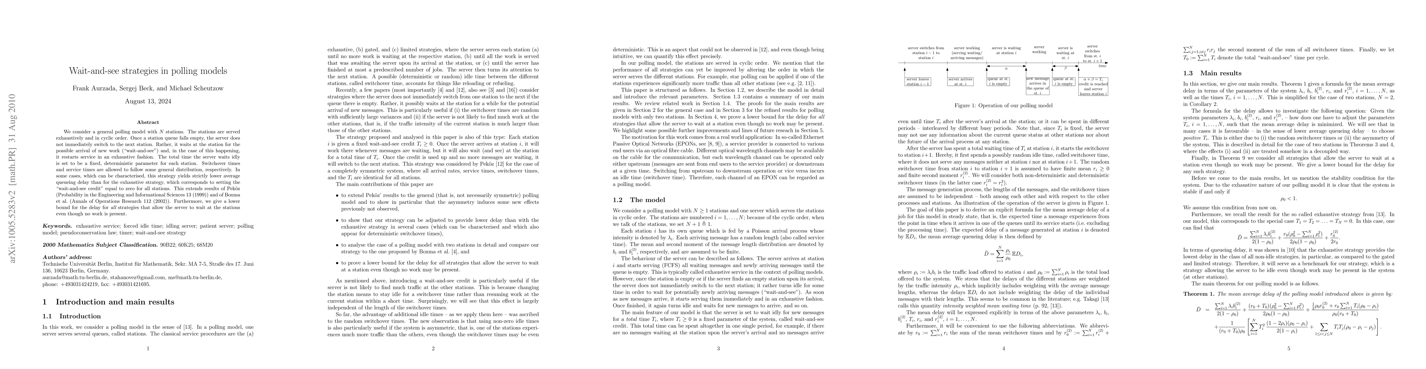 We consider a general polling model with $N$ stations. The stations are served exhaustively and in cyclic order. Once a station queue falls empty, the server does not immediately switch to the next station. Rather, it waits at the station for the possible arrival of new work ("wait-and-see") and, in the case of this happening, it restarts service in an exhaustive fashion. The total time the server waits idly is set to be a fixed, deterministic parameter for each station. Switchover times and service times are allowed to follow some general distribution, respectively. In some cases, which can be characterised, this strategy yields strictly lower average queueing delay than for the exhaustive strategy, which corresponds to setting the "wait-and-see credit" equal to zero for all stations. This extends results of Pek\"oz (Probability in the Engineering and Informational Sciences 13 (1999)) and of Boxma et al. (Annals of Operations Research 112 (2002)). Furthermore, we give a lower bound for the delay for {\it all} strategies that allow the server to wait at the stations even though no work is present.