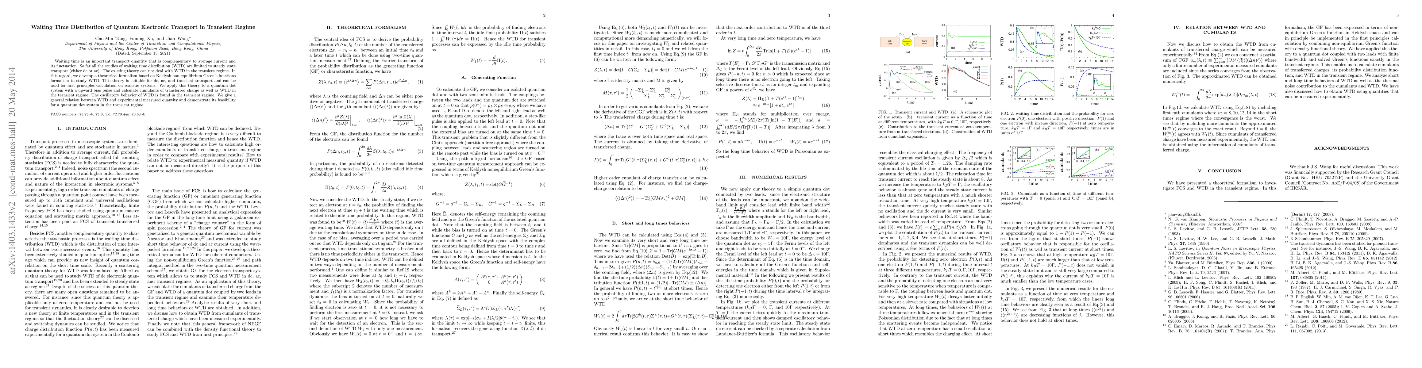 This paper develops a theory to calculate the waiting time distribution (WTD) for electronic transport in transient regimes, extending beyond steady-state studies. It uses Keldysh non-equilibrium Green's functions to derive the generating function of full counting statistics, providing insights into short and long-time behaviors of WTD in quantum dot systems.