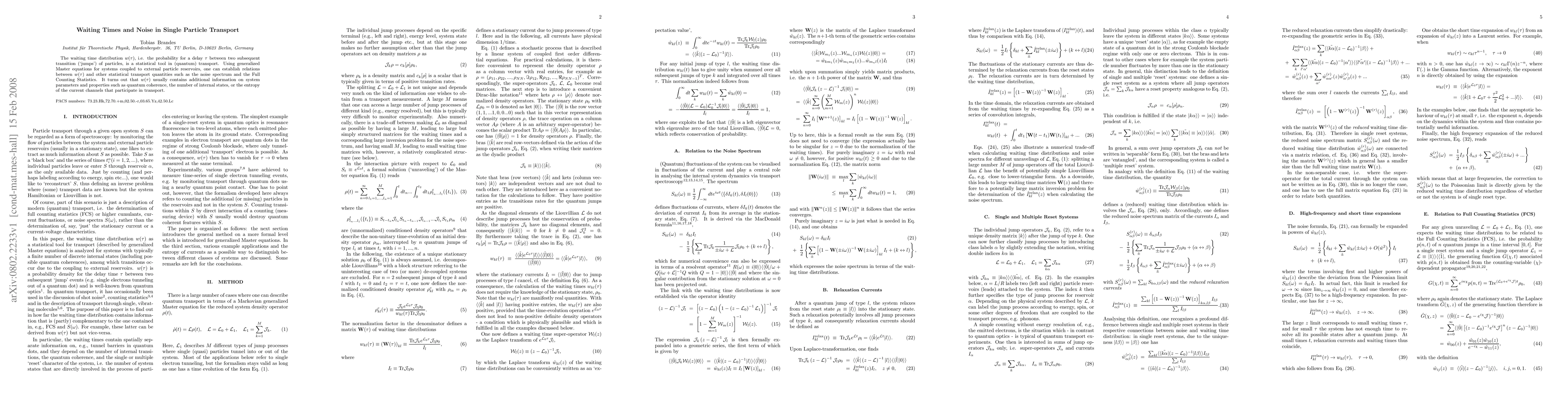 The waiting time distribution $w(\tau)$, i.e. the probability for a delay $\tau$ between two subsequent transition (`jumps') of particles, is a statistical tool in (quantum) transport. Using generalized Master equations for systems coupled to external particle reservoirs, one can establish relations between $w(\tau)$ and other statistical transport quantities such as the noise spectrum and the Full Counting Statistics. It turns out that $w(\tau)$ usually contains additional information on system parameters and properties such as quantum coherence, the number of internal states, or the entropy of the current channels that participate in transport.