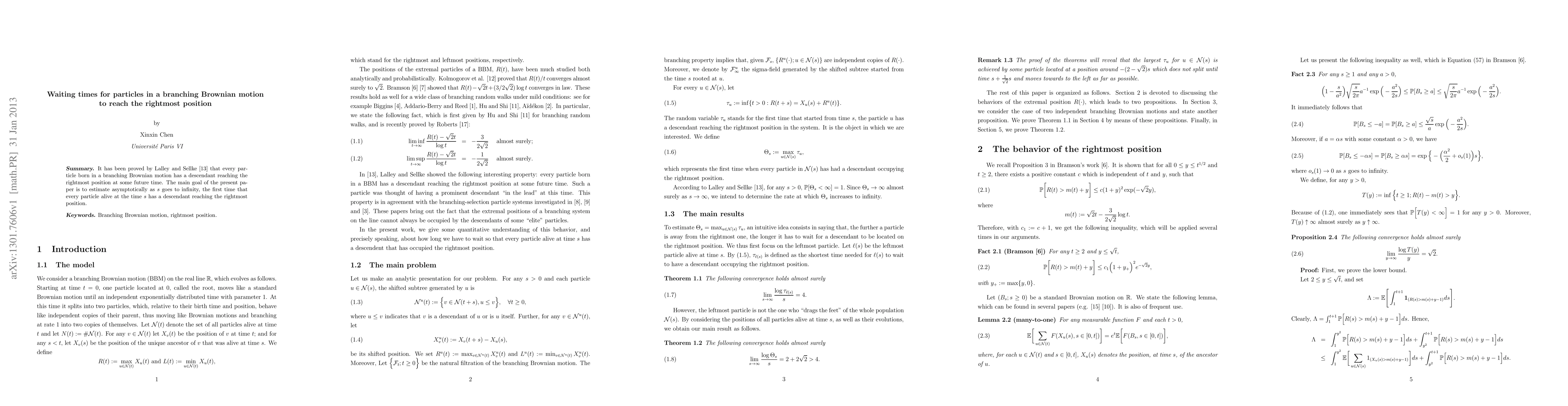 This paper estimates the asymptotic waiting time for all particles in a branching Brownian motion to have at least one descendant reaching the rightmost position as time approaches infinity, building on prior results by Lalley and Sellke.