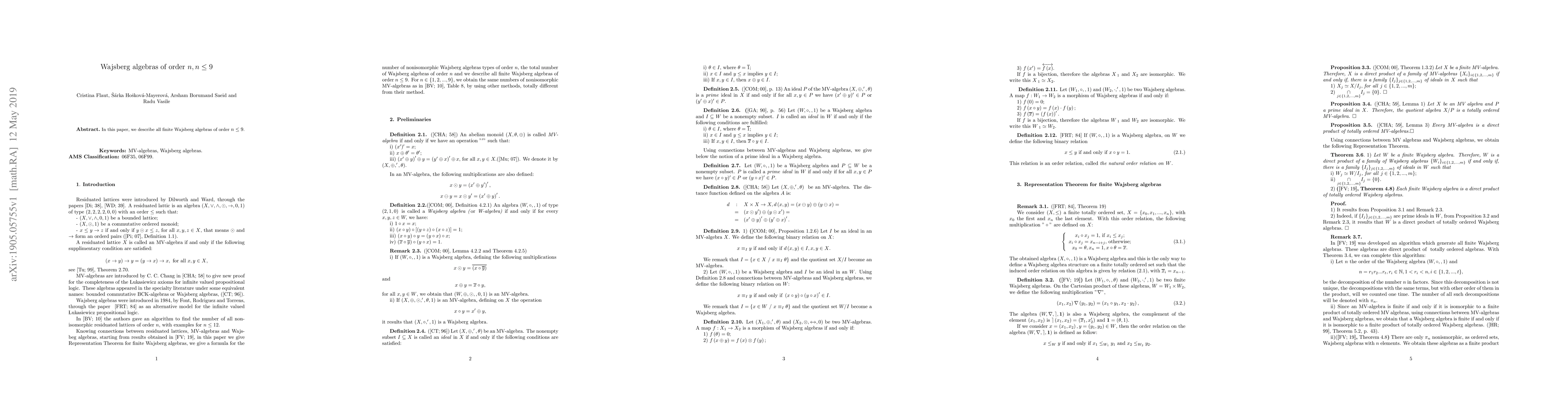 Summary: This paper provides a comprehensive classification of all finite Wajsberg algebras with orders up to 9, detailing their structures and properties. The findings contribute to the understanding of algebraic logic systems.