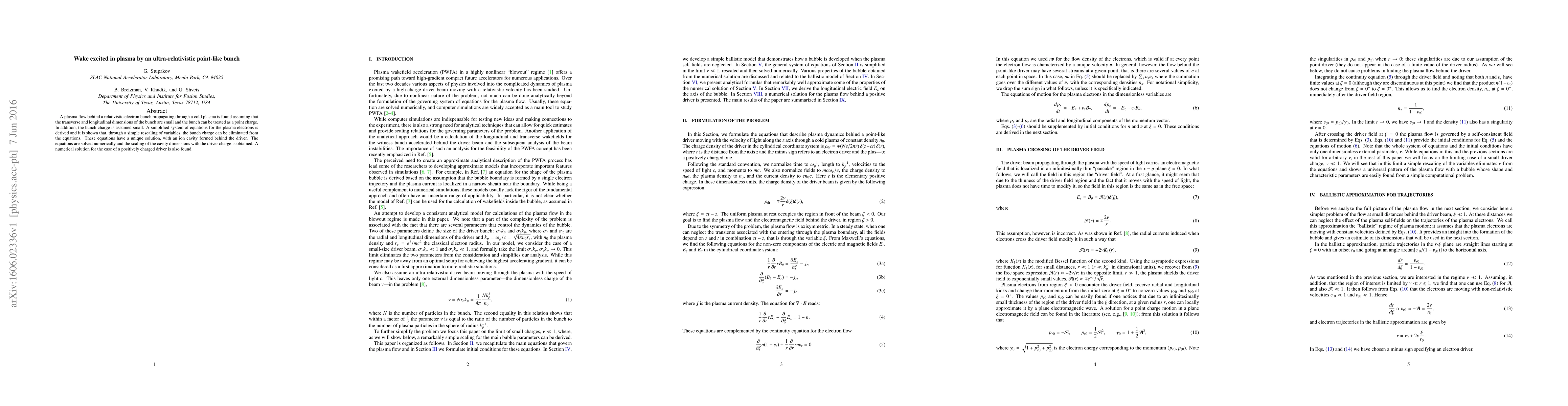 This paper investigates the wake excited in plasma by a relativistic electron bunch treated as a point charge, deriving a simplified system of equations for plasma electrons. Numerical solutions reveal the formation of an ion cavity behind the driver, with scaling of cavity dimensions dependent on the driver charge.