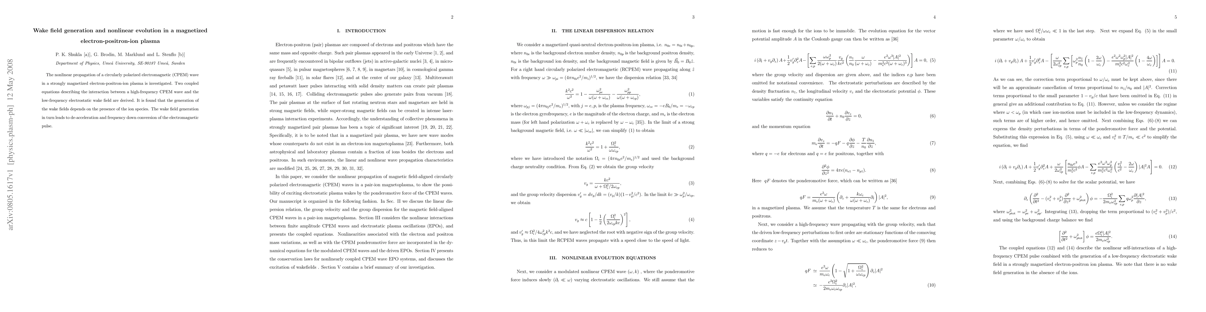 The nonlinear propagation of a circularly polarized electromagnetic (CPEM) wave in a strongly magnetized electron-positron-ion plasma is investigated. Two coupled equations describing the interaction between a high-frequency CPEM wave and the low-frequency electrostatic wake field are derived. It is found that the generation of the wake fields depends on the presence of the ion species. The wake field generation in turn leads to de-acceleration and frequency down conversion of the electromagnetic pulse.