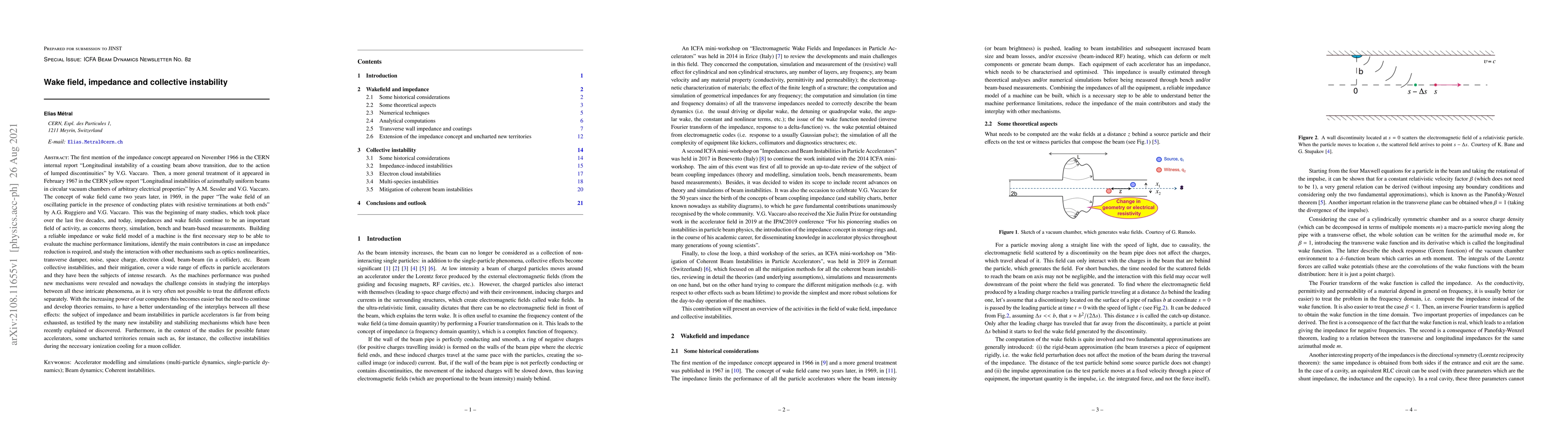The first mention of the impedance concept appeared on November 1966 in the CERN internal report "Longitudinal instability of a coasting beam above transition, due to the action of lumped discontinuities" by V.G. Vaccaro. This was the beginning of many studies, which took place over the last five decades, and today, impedances and wake fields continue to be an important field of activity, as concerns theory, simulation, bench and beam-based measurements. Building a reliable impedance or wake field model of a machine is the first necessary step to be able to evaluate the machine performance limitations, identify the main contributors in case an impedance reduction is required, and study the interaction with other mechanisms such as optics nonlinearities, transverse damper, noise, space charge, electron cloud, beam-beam (in a collider), etc. Beam collective instabilities, and their mitigation, cover a wide range of effects in particle accelerators and they have been the subjects of intense research. As the machines performance was pushed new mechanisms were revealed and nowadays the challenge consists in studying the interplays between all these intricate phenomena, as it is very often not possible to treat the different effects separately. With the increasing power of our computers this becomes easier but the need to continue and develop theories remains, to have a better understanding of the interplays between all these effects: the subject of impedance and beam instabilities in particle accelerators is far from being exhausted, as testified by the many new instability and stabilizing mechanisms which have been recently explained or discovered. Furthermore, in the context of the studies for possible future accelerators, some uncharted territories remain such as, for instance, the collective instabilities during the necessary ionization cooling for a muon collider.