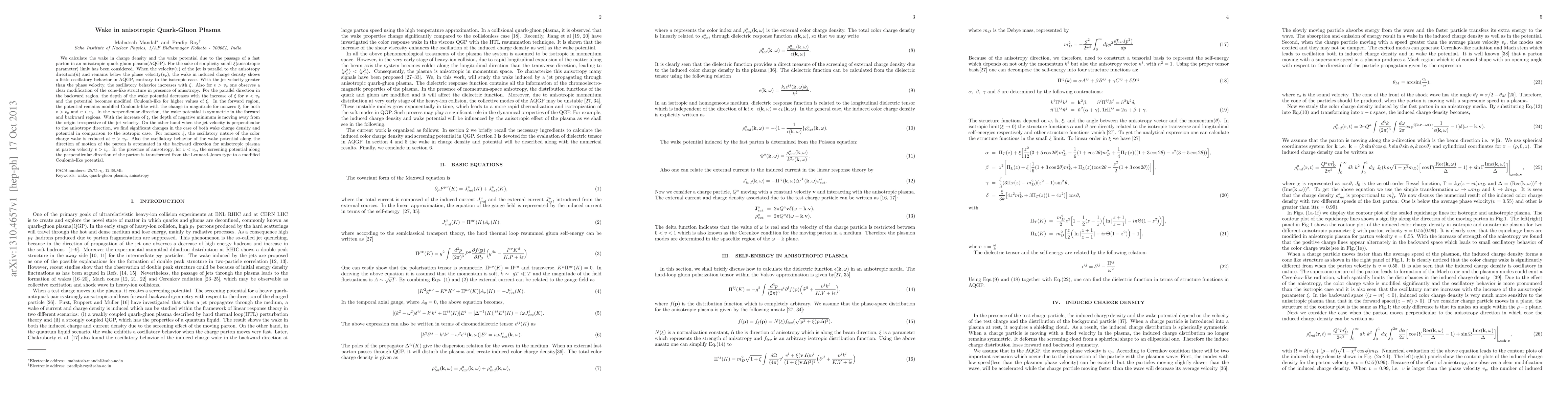 The paper presents an analytical calculation of the wake in charge density and wake potential in an anisotropic quark-gluon plasma, providing a detailed analysis of how anisotropy modifies the wake structure compared to the isotropic case.