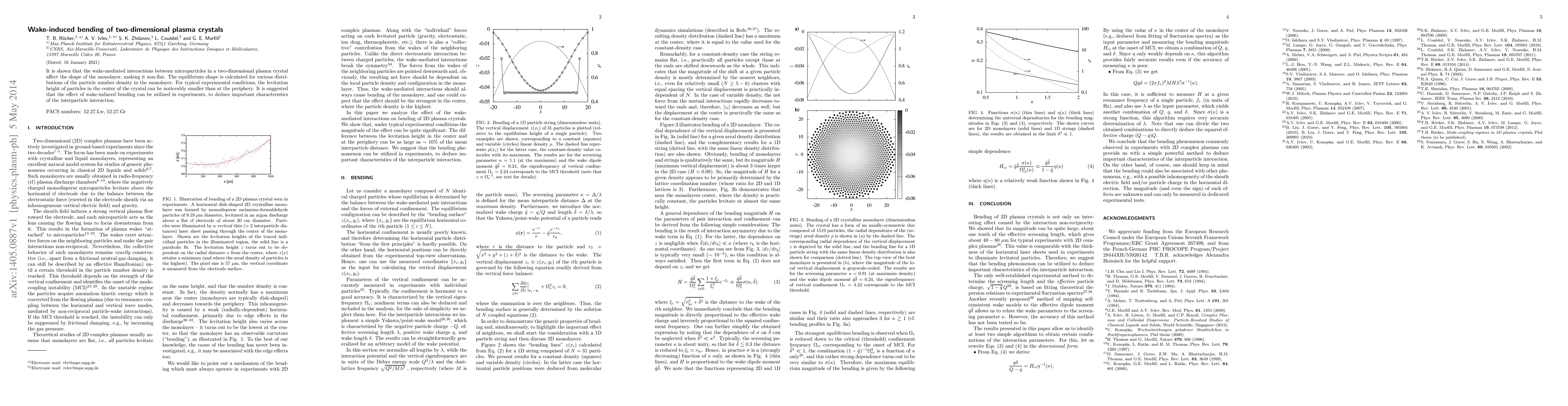 Research shows that wake-induced interactions in a two-dimensional plasma crystal cause it to bend into a non-flat shape. This effect can help deduce characteristics of interparticle interaction in experiments.