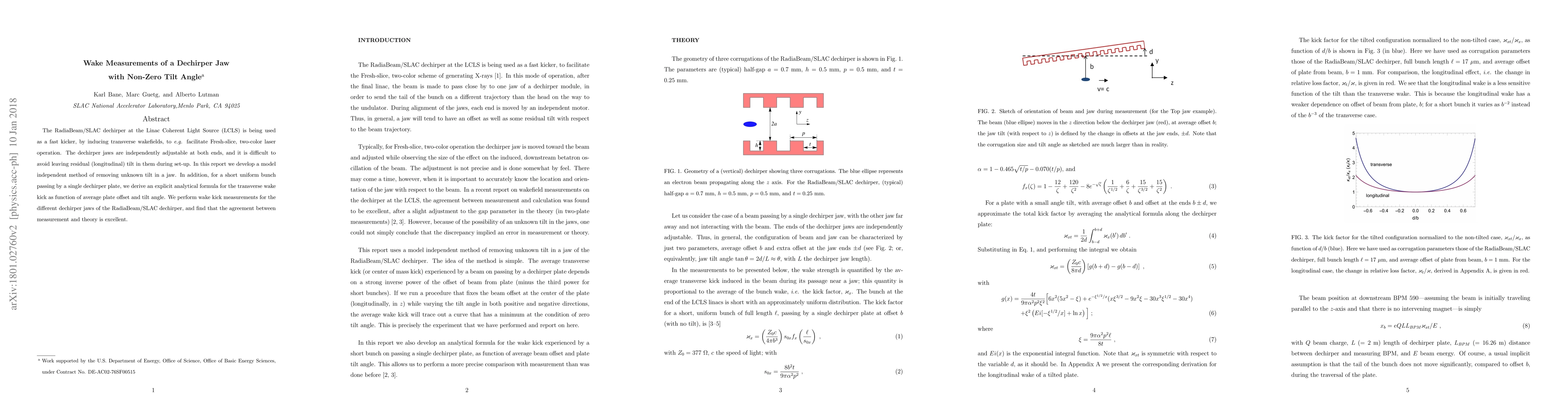 The RadiaBeam/SLAC dechirper at the Linac Coherent Light Source (LCLS) is being used as a fast kicker, by inducing transverse wakefields, to e.g. facilitate Fresh-slice, two-color laser operation. The dechirper jaws are independently adjustable at both ends, and it is difficult to avoid leaving residual (longitudinal) tilt in them during set-up. In this report we develop a model independent method of removing unknown tilt in a jaw. In addition, for a short uniform bunch passing by a single dechirper plate, we derive an explicit analytical formula for the transverse wake kick as function of average plate offset and tilt angle. We perform wake kick measurements for the different dechirper jaws of the RadiaBeam/SLAC dechirper, and find that the agreement between measurement and theory is excellent.