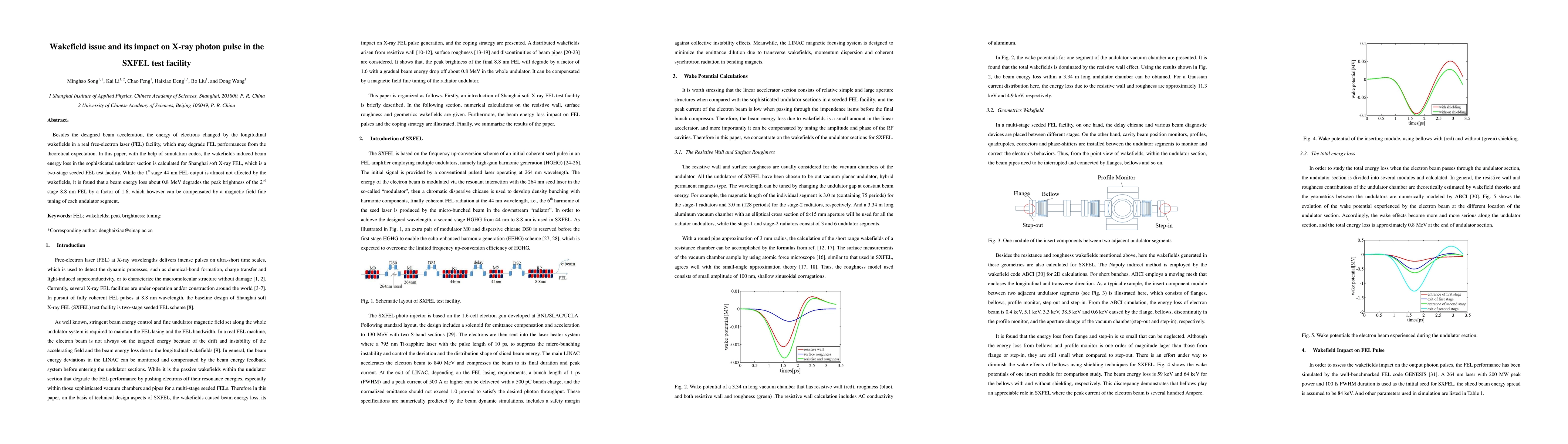 This paper investigates the impact of longitudinal wakefields on electron beam energy in the Shanghai soft X-ray FEL test facility, finding that while the first stage's 44 nm FEL output remains unaffected, the second stage's 8.8 nm FEL brightness is degraded by a beam energy loss of 0.8 MeV, an effect that can be mitigated through magnetic field adjustments.