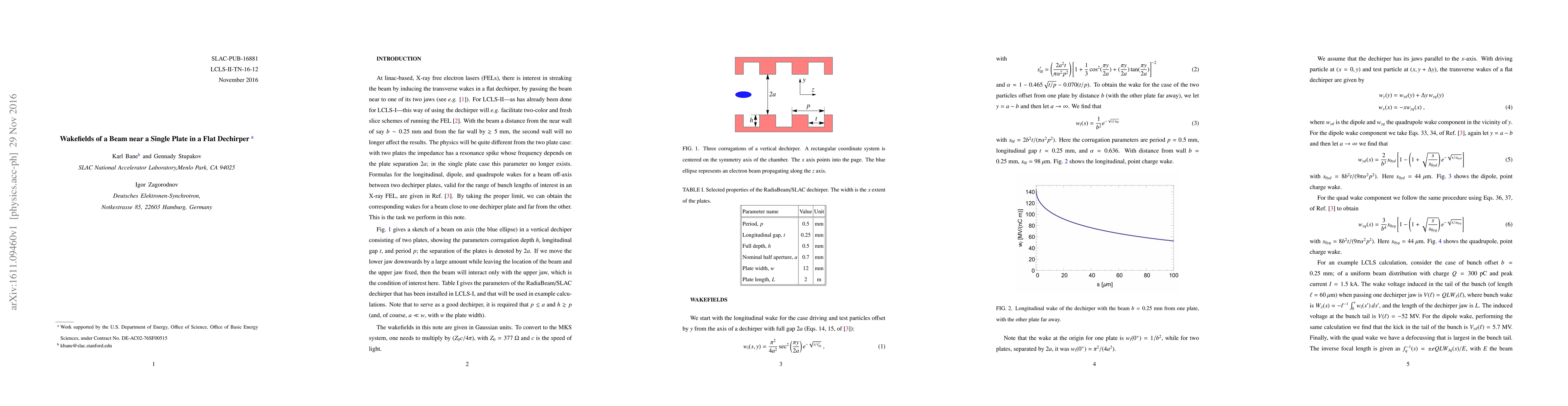 Researchers developed formulas to calculate the wakes created when a beam of electrons passes near a single plate in a flat dechirper, improving understanding of particle accelerator design.