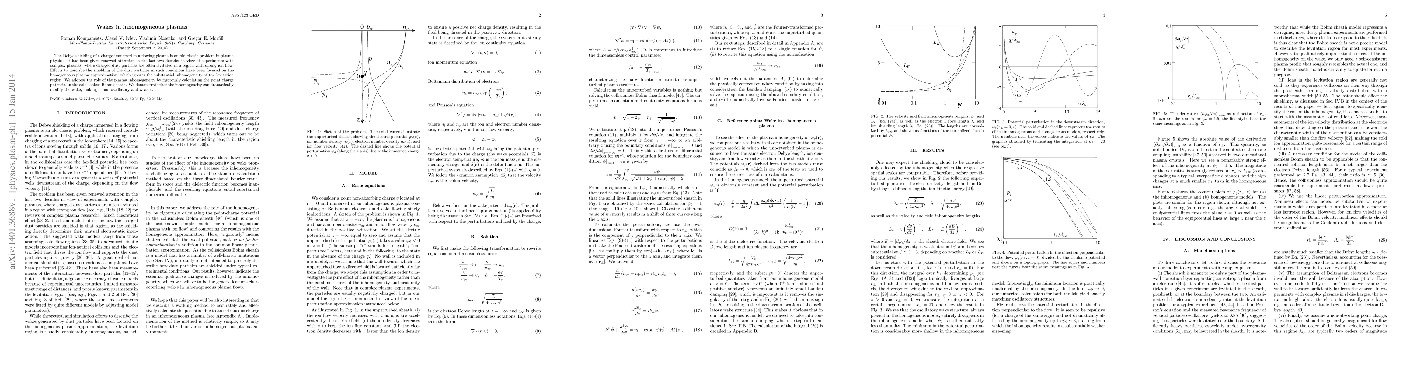 The Debye shielding of a charge immersed in a flowing plasma is an old classic problem in plasma physics. It has been given renewed attention in the last two decades in view of experiments with complex plasmas, where charged dust particles are often levitated in a region with strong ion flow. Efforts to describe the shielding of the dust particles in such conditions have been focused on the homogeneous plasma approximation, which ignores the substantial inhomogeneity of the levitation region. We address the role of the plasma inhomogeneity by rigorously calculating the point charge potential in the collisionless Bohm sheath. We demonstrate that the inhomogeneity can dramatically modify the wake, making it non-oscillatory and weaker.