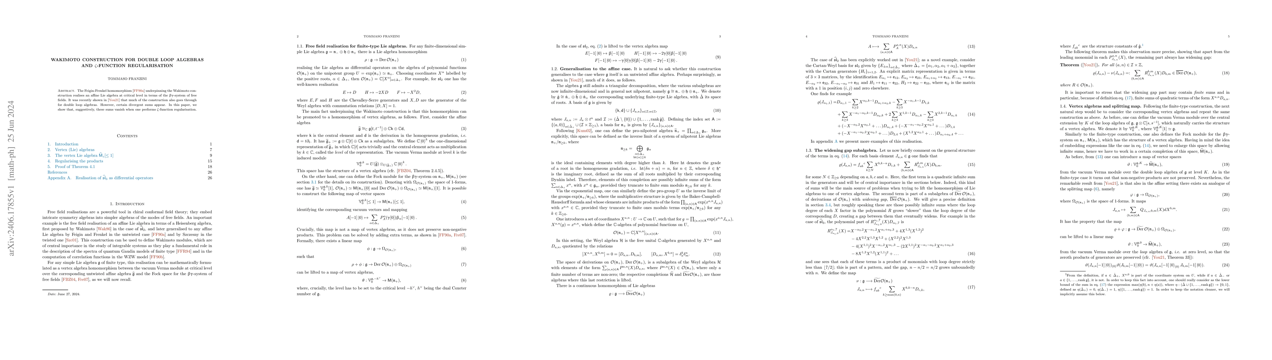 Summary: This paper explores the Wakimoto construction for double loop algebras and demonstrates that divergent sums arising from this construction vanish when regularised using $\zeta$-function regularisation, extending the Feigin-Frenkel homomorphism framework.