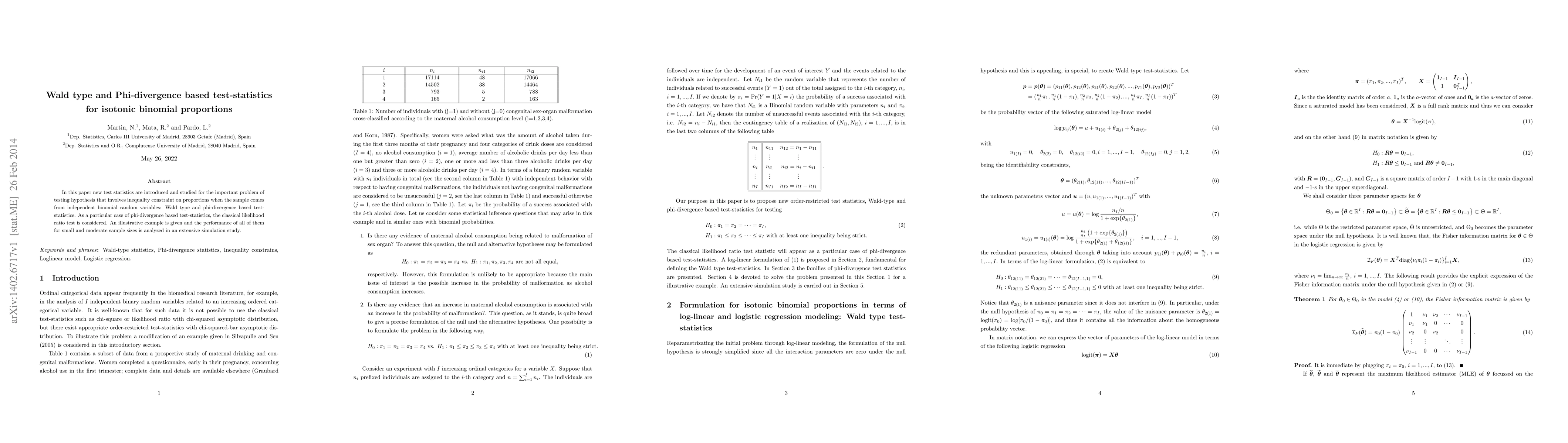 This paper introduces new Wald type and phi-divergence based test statistics for testing hypotheses involving inequality constraints on binomial proportions. An extensive simulation study evaluates their performance for small and moderate sample sizes, including the classical likelihood ratio test as a special case.