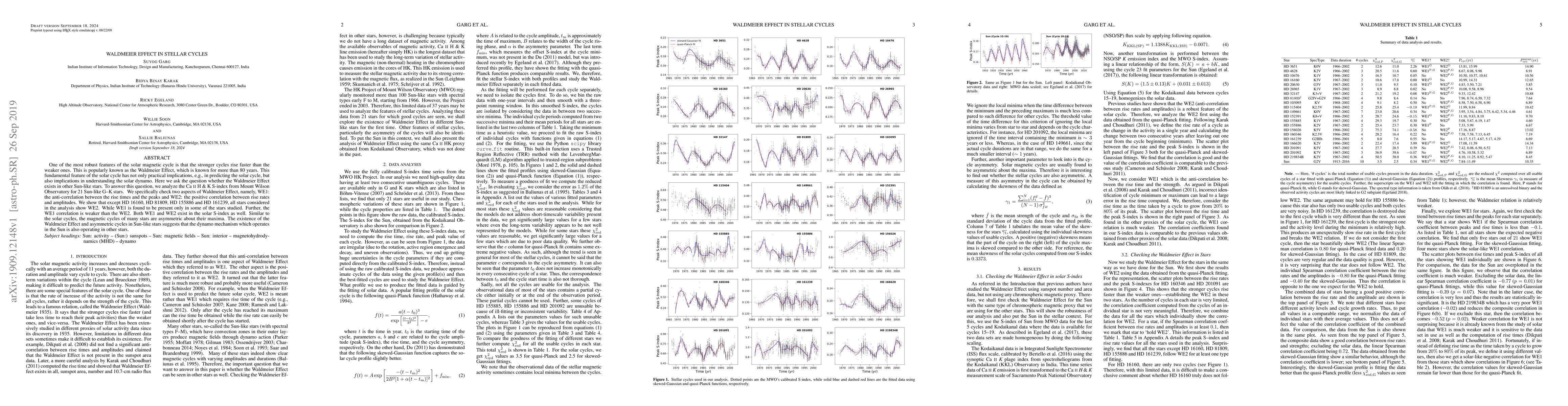 The Waldmeier Effect, a solar magnetic cycle phenomenon, is found to exist in most Sun-like stars, with two-thirds showing a positive correlation between rise rates and amplitudes.