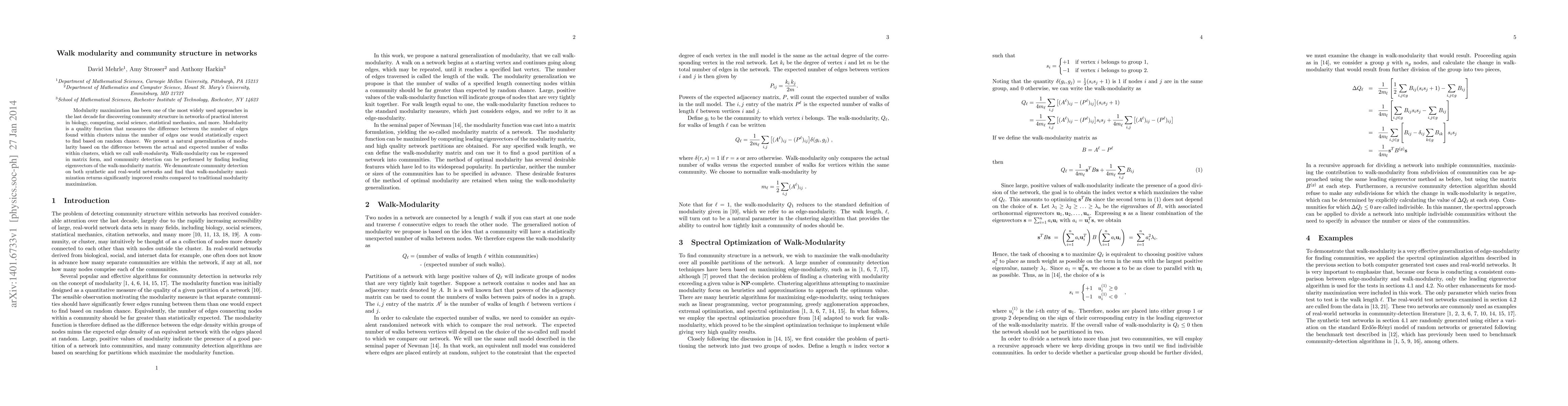 This paper introduces walk-modularity, a generalization of modularity for detecting community structure in networks, based on the difference between actual and expected walks within clusters. It shows that walk-modularity, expressed in matrix form, outperforms traditional modularity maximization through improved results on both synthetic and real-world networks.