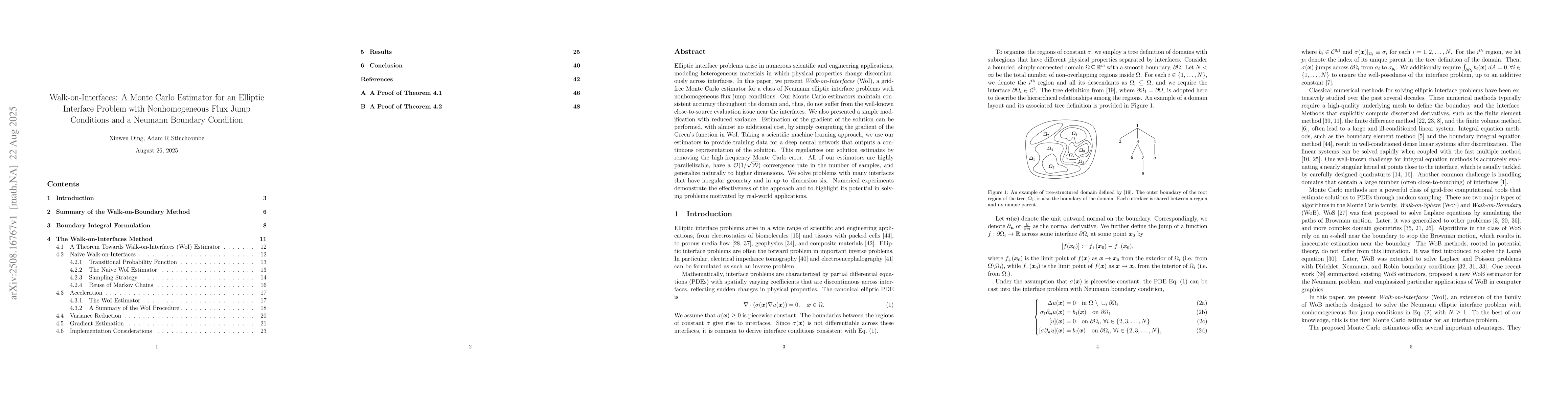 Elliptic interface problems arise in numerous scientific and engineering applications, modeling heterogeneous materials in which physical properties change discontinuously across interfaces. In this paper, we present \textit{Walk-on-Interfaces} (WoI), a grid-free Monte Carlo estimator for a class of Neumann elliptic interface problems with nonhomogeneous flux jump conditions. Our Monte Carlo estimators maintain consistent accuracy throughout the domain and, thus, do not suffer from the well-known close-to-source evaluation issue near the interfaces. We also presented a simple modification with reduced variance. Estimation of the gradient of the solution can be performed, with almost no additional cost, by simply computing the gradient of the Green's function in WoI. Taking a scientific machine learning approach, we use our estimators to provide training data for a deep neural network that outputs a continuous representation of the solution. This regularizes our solution estimates by removing the high-frequency Monte Carlo error. All of our estimators are highly parallelizable, have a $\mathcal{O}(1 / \sqrt{\mathcal{W}})$ convergence rate in the number of samples, and generalize naturally to higher dimensions. We solve problems with many interfaces that have irregular geometry and in up to dimension six. Numerical experiments demonstrate the effectiveness of the approach and to highlight its potential in solving problems motivated by real-world applications.