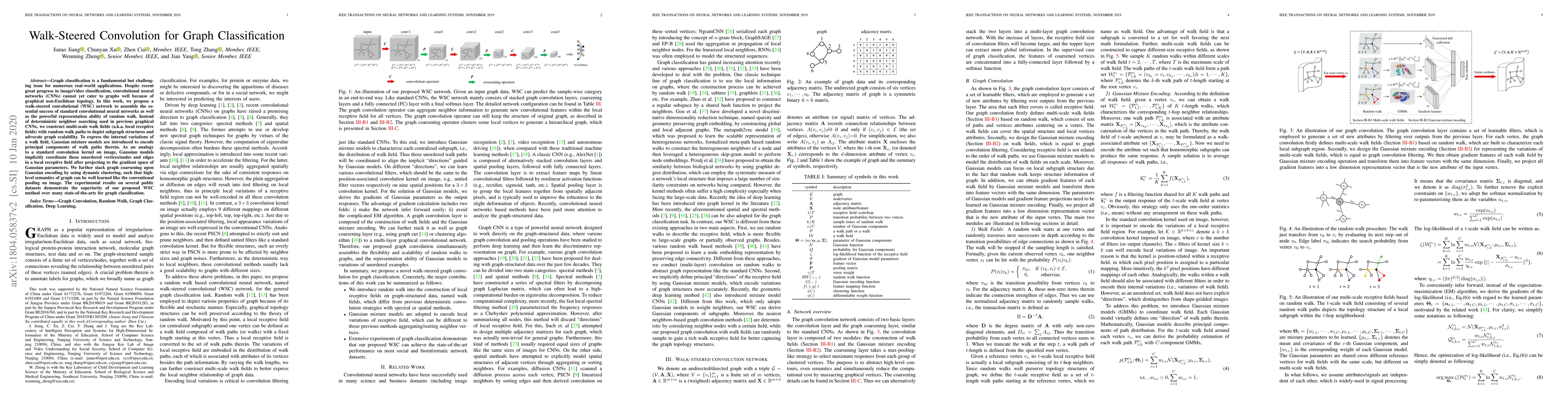 Researchers propose a new convolutional neural network called Walk-Steered Convolution that can effectively classify graphs due to its ability to depict subgraph structures using random walk paths and Gaussian mixture models. The method outperforms existing state-of-the-art methods on several public datasets.