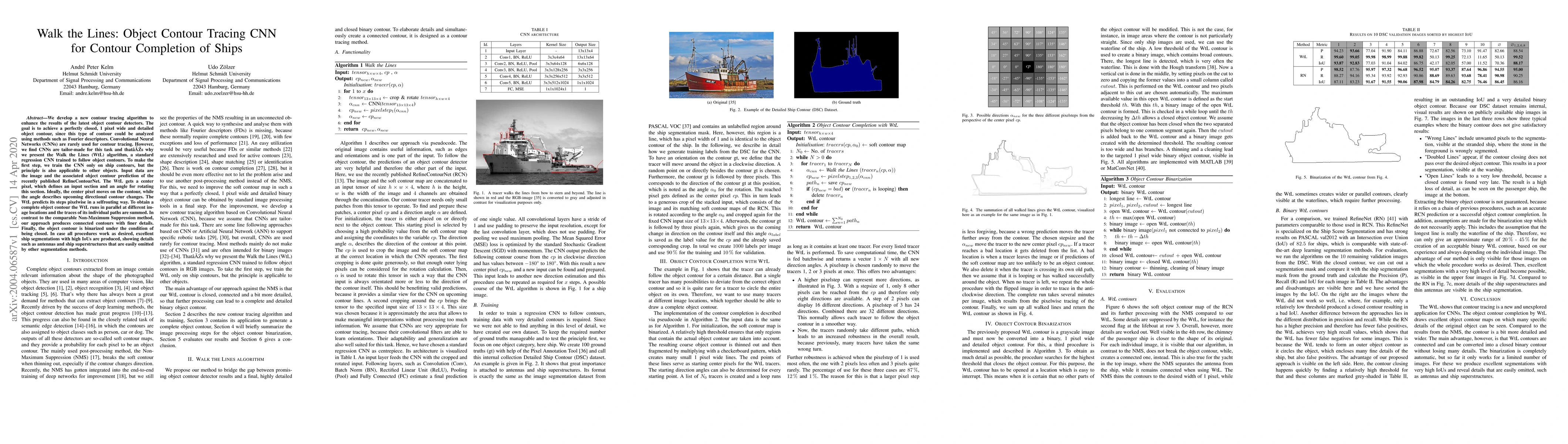 This paper introduces the Walk the Lines (WtL) algorithm, a contour tracing Convolutional Neural Network (CNN) designed to produce perfectly closed, 1-pixel wide, and detailed object contours, particularly for ships. The WtL algorithm follows object contours in a self-routing manner, generating connected and detailed contours that outperform Non-Maximum Suppression methods.