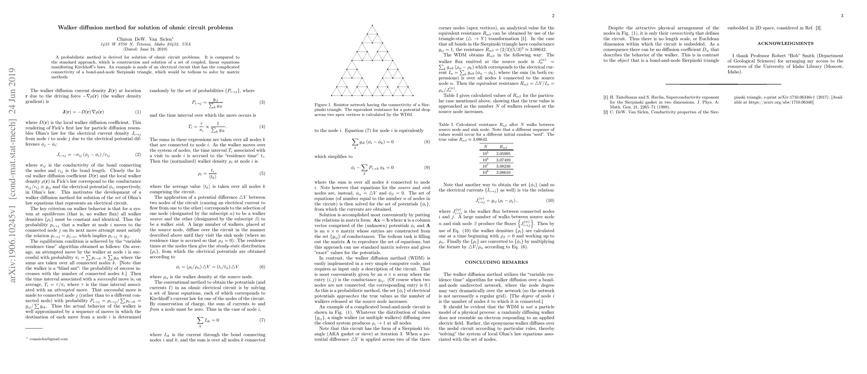 A probabilistic method is derived for solution of ohmic circuit problems. It is compared to the standard approach, which is construction and solution of a set of coupled, linear equations manifesting Kirchhoff's laws. An example is made of an electrical circuit that has the complicated connectivity of a bond-and-node Sierpinski triangle, which would be tedious to solve by matrix methods.