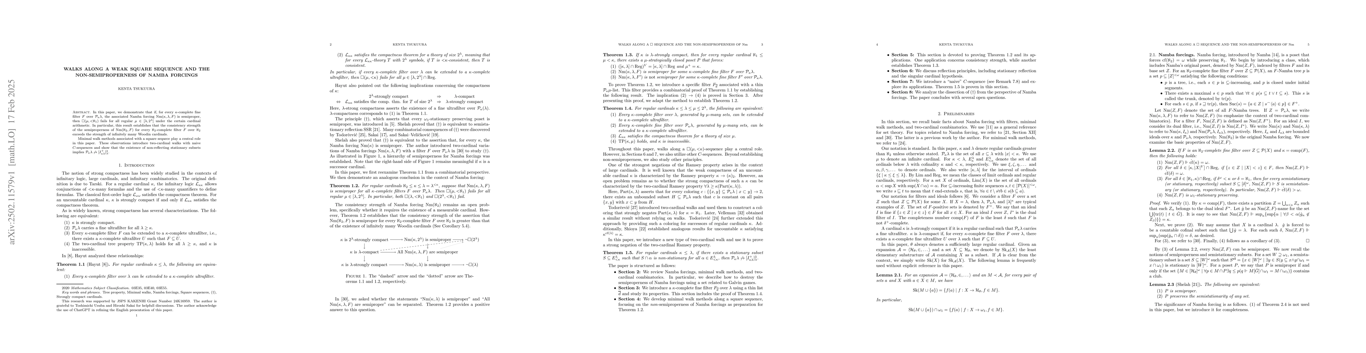 The work presents a fresh perspective on the relationship between semiproper Namba forcings and square sequences, extending previous results by integrating two-cardinal walks and fine filters.