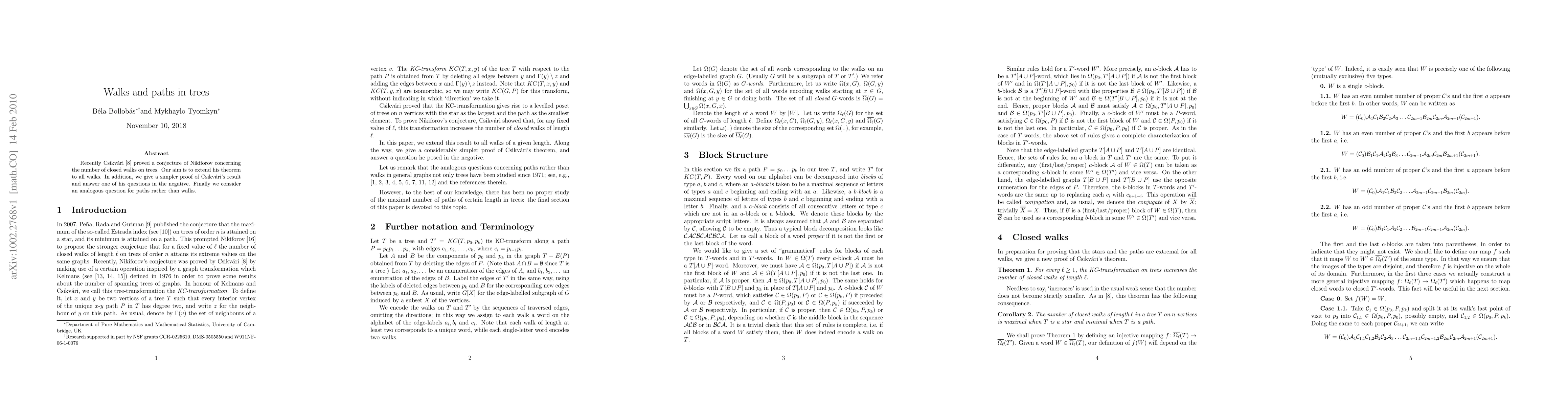 Researchers extend a theorem on closed walks in trees to all walks and provide a simpler proof, while also exploring analogous questions for paths in trees.