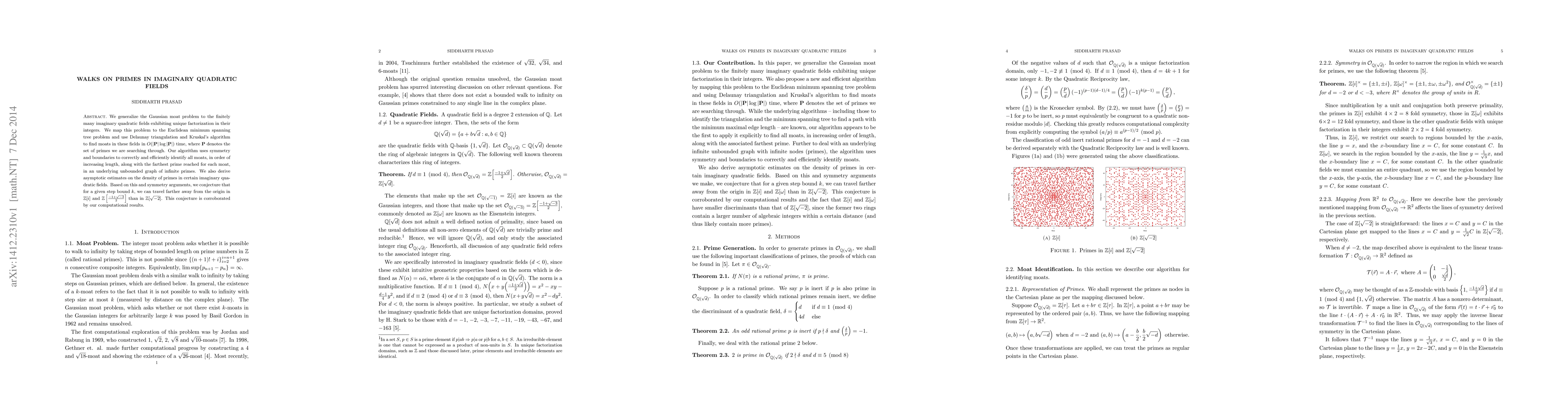 Researchers developed an algorithm to find moats in imaginary quadratic fields using Delaunay triangulation and Kruskal's algorithm, solving the problem of finding walks on primes in these fields. The algorithm enables traveling farther away from the origin than previously thought possible.