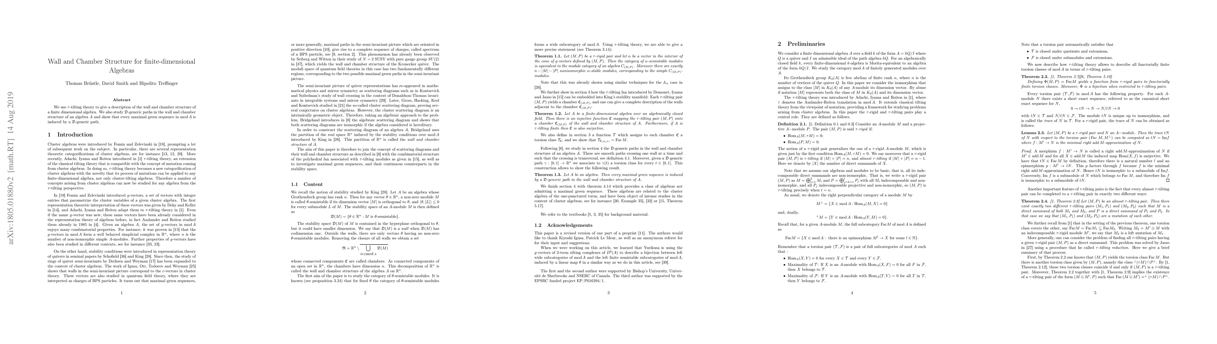 Summary: This paper employs $\tau$-tilting theory to describe the wall and chamber structure of finite-dimensional algebras, and demonstrates that every maximal green sequence in mod $A$ is induced by $\mathfrak{D}$-generic paths within the structure.